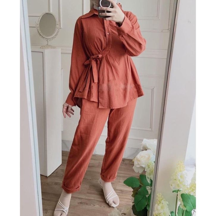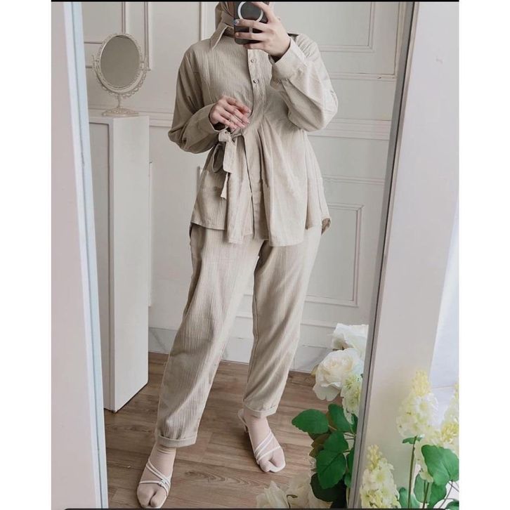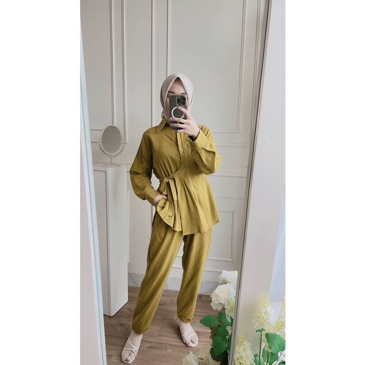 SENLY SETELAN CRINCLE WANITA // LENSY SET KIMONO