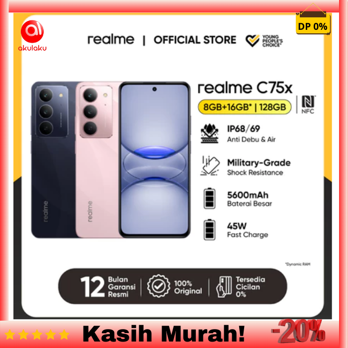 [Star] realme C71 4GB+8GB* |128GB (6300 Baterai | 45W Fast Charge | Military Grade Shock Resistance | NFC)