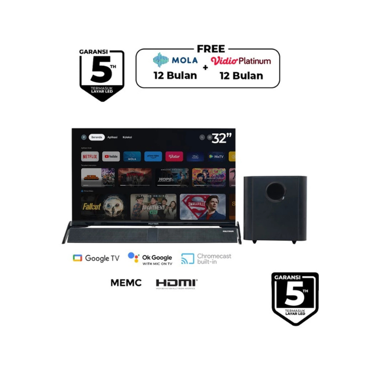 SMART ANDROID TV 32 24 43 INCH POLYTRON CINEMAX SMART REMOTE DIGITAL LED HD FHD UHD GARANSI RESMI