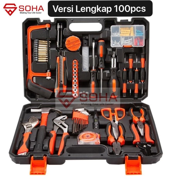ART-012 TOOLKIT 100 PCS TOOLS SET BOX TOOL KIT PERKAKAS MEKANIK RUMAH