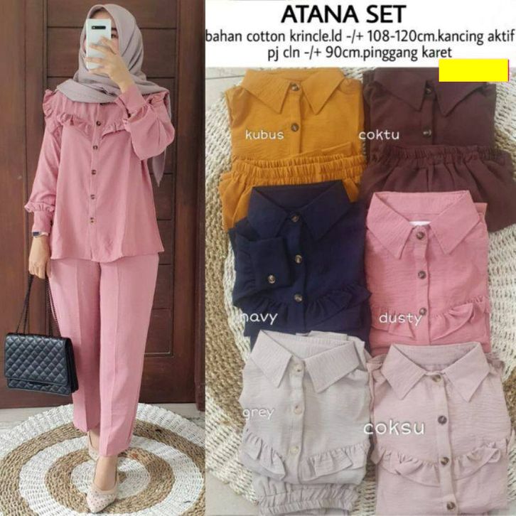 OCHA-DUSTYPINK, OCHA-DENIM, OCHA-LEMON, OCHA-MILO , OCHA-HITAM , ATANA-DUSTY, ATANA-ARMY , ATANA-LEMON , ATANA-HITAM, ATANA-ABU MUDA, ATANA-LAVENDER MUDA, ATANA-MUSTARD, ATANA-MAROON, ATANA-LAVENDER TUA, ATANA-ABU GELAP, ATANA-FANTA, ATANA-DENIM , ATANA-BATA , ATANA-MILO, SLIMPI-OLIVE , SLIMPI-MILO, SLIMPI-KUNYIT, SLIMPI-MAROON, SLIMPI-HITAM , SLIMPI-SAGE, SLIMPI-ABU GELAP , SLIMPI-BATA, KEMEJA NIKI-RANDOM