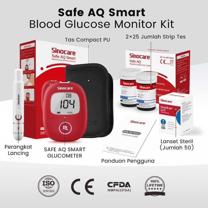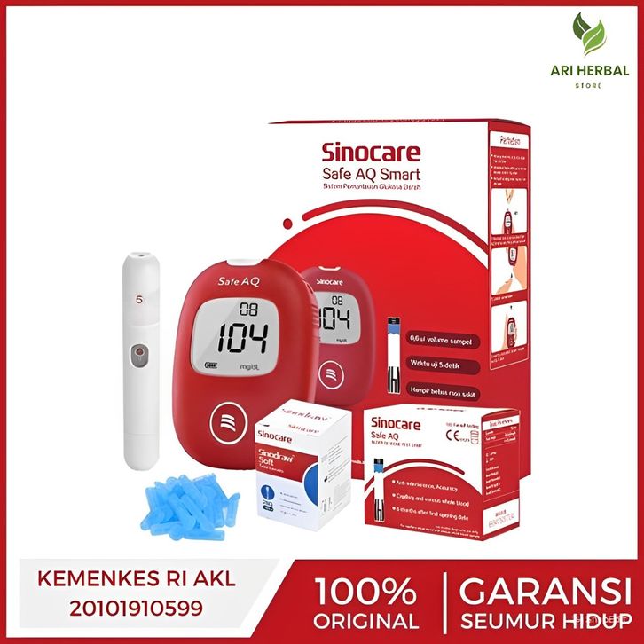 ALAT CEK KESEHATAN GULA DARAH MEREK SINOCARE SAFE AQ SMART PAKET ALAT TES MONITOR BLOOD SUGAR TERLARIS