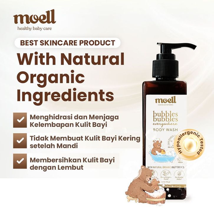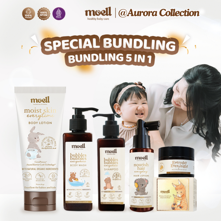 Moell Paket Special Bundling 5 in 1 - SLS Free Body Lotion Body Wash Shampoo Hair Lotion Balm