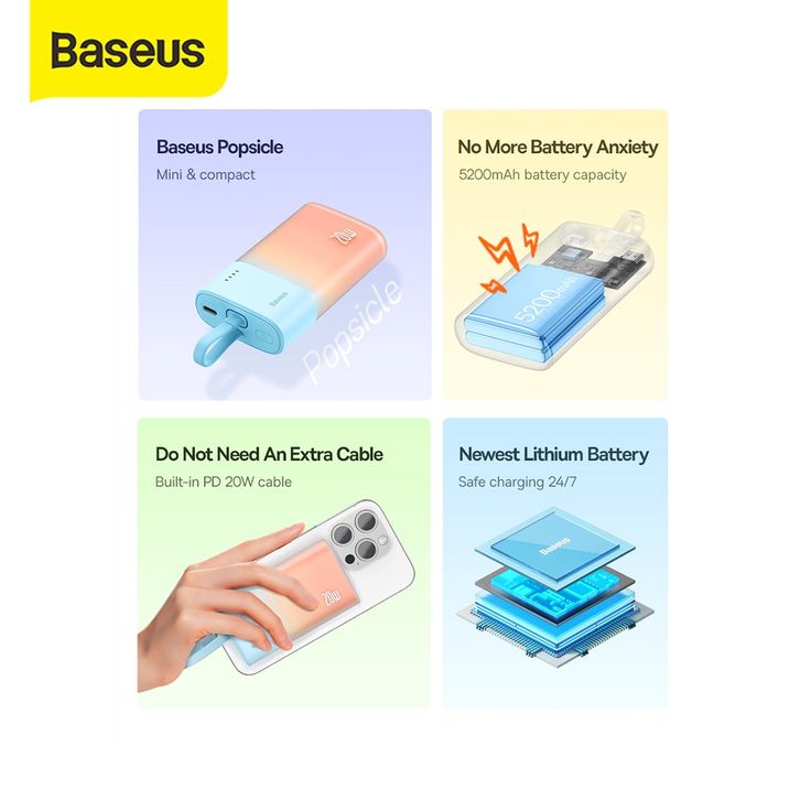 Baseus Popsicle Fast Charging Power Bank PD 20W Iphone/Type-C 5200mAh