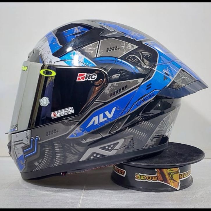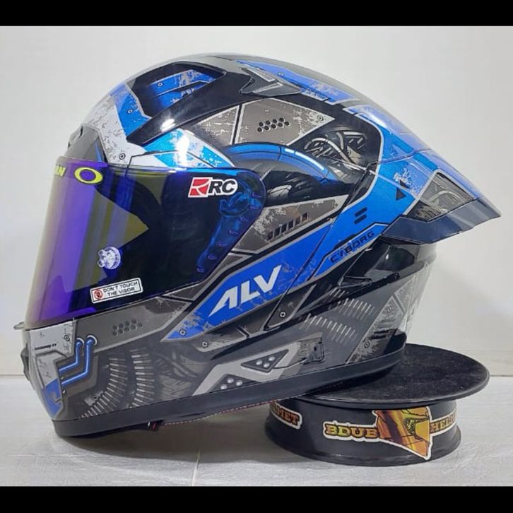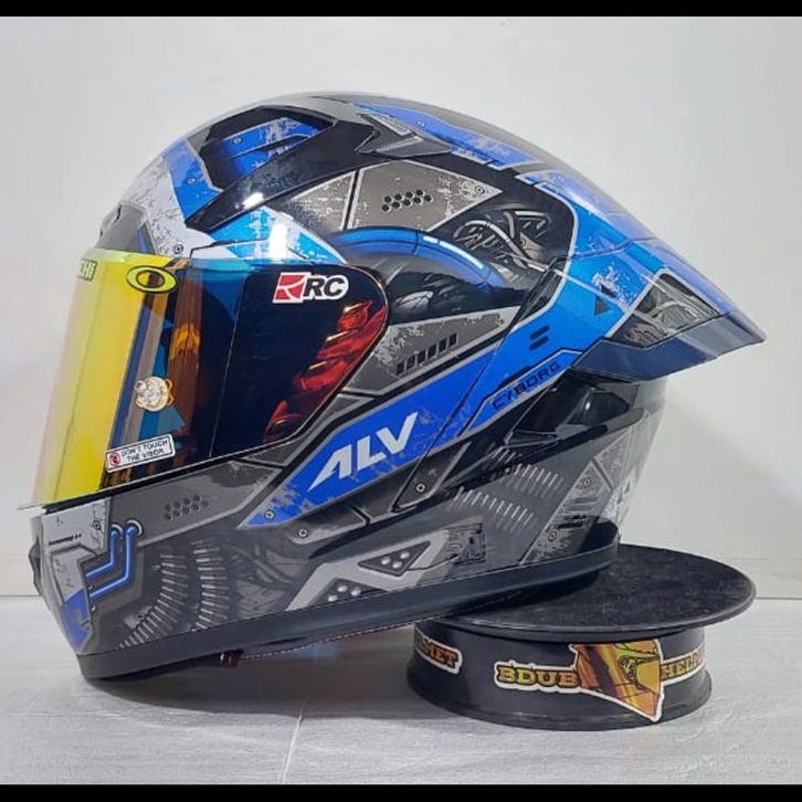 HELM ALV GENESIS CYBORG BLUE PAKET GANTENG FULL FACE ORIGINAL (VISOR IRIDIUM - STIKER - SPOILER)