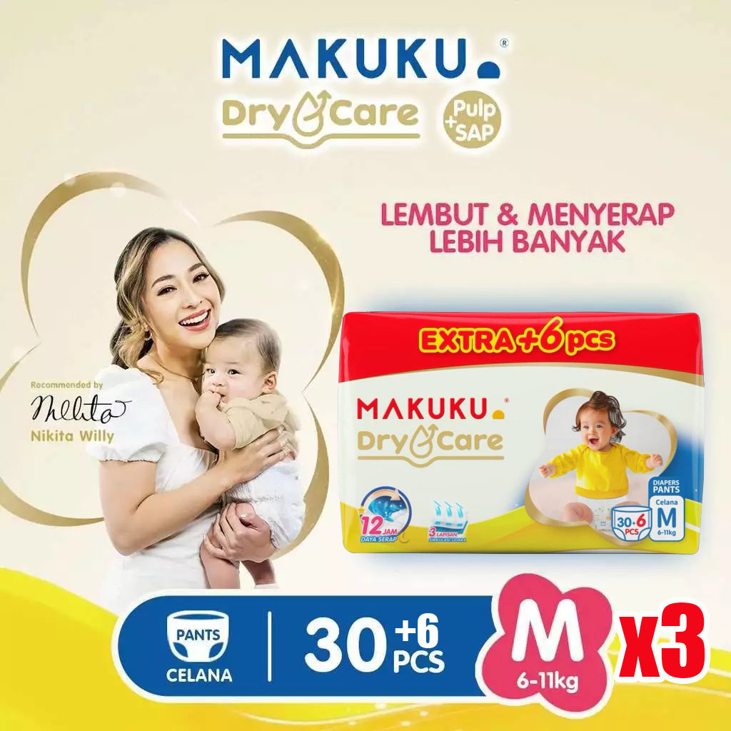 Paket 3 Ball MAKUKU Dry Care Pants NB-S44 S38 M30+6 L28+6 XL24+4 XXL22+4 Popok Celana x3