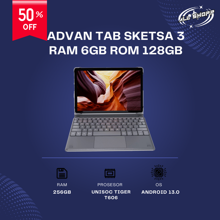 [Star] Tablet Advan Sketsa 3 Layar 10.1” HD IPS [ Free Keyboard & Stylus Pen ] 128GB+RAM 6GB Android 13 Garansi Terbaru