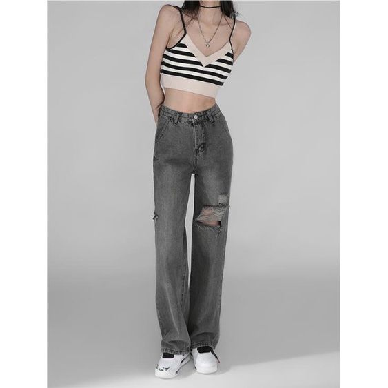 Celana Kulot Jeans Sobek Lutut Kulot Jeans Wanita Model Robek Clana Denim Culot Perempuan Korean Style Size S M XL lucu