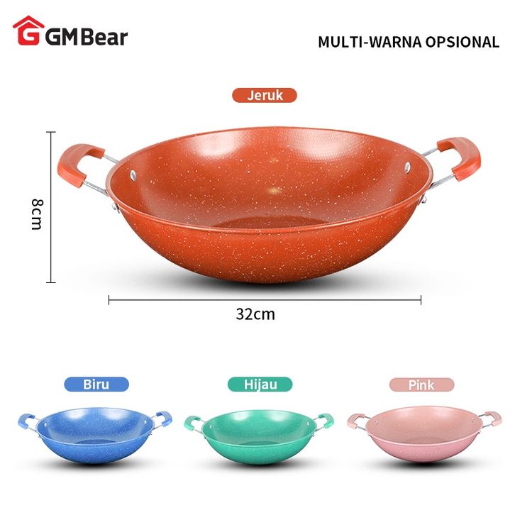Wok pan GM Bear Wajan Penggorengan Wok 32cm P0067 Fry Pan Stainless Steel 32cm