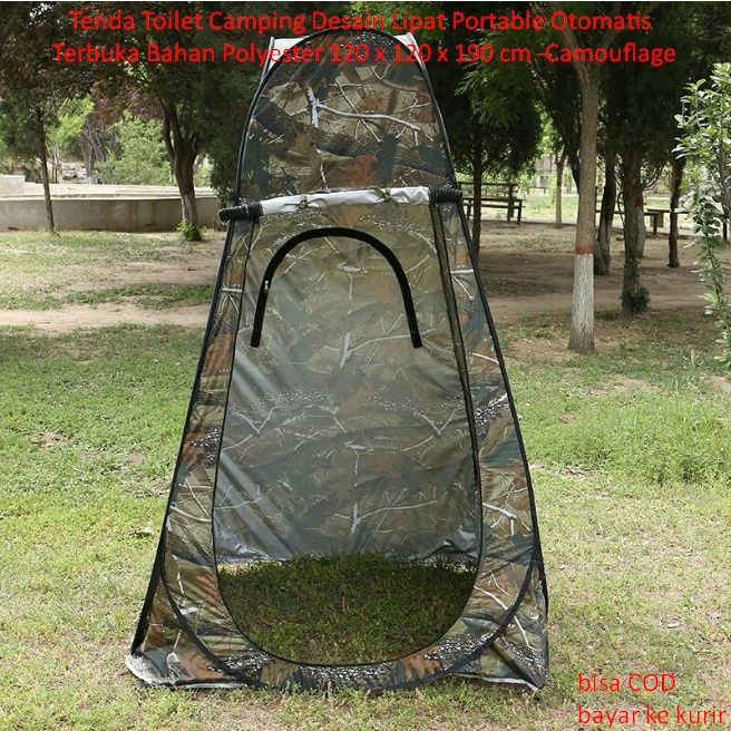 Tenda Toilet Camping Desain Lipat Portable Otomatis Terbuka Bahan Polyester 120 X 120 X 190 Cm Camouflage