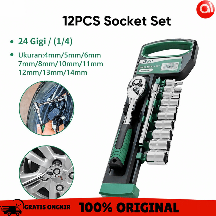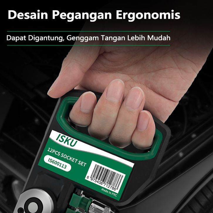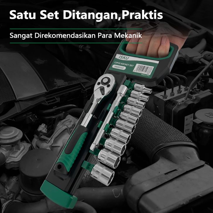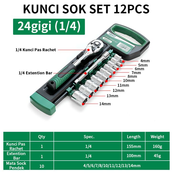 ALAT PERTUKANGAN ISKU Kunci Sok Socket Set 12 Pcs/Kunci 1 Set Lengkap 1/4 Inch Rachet /Alat Perkakas Lengkap Motor 12pcs