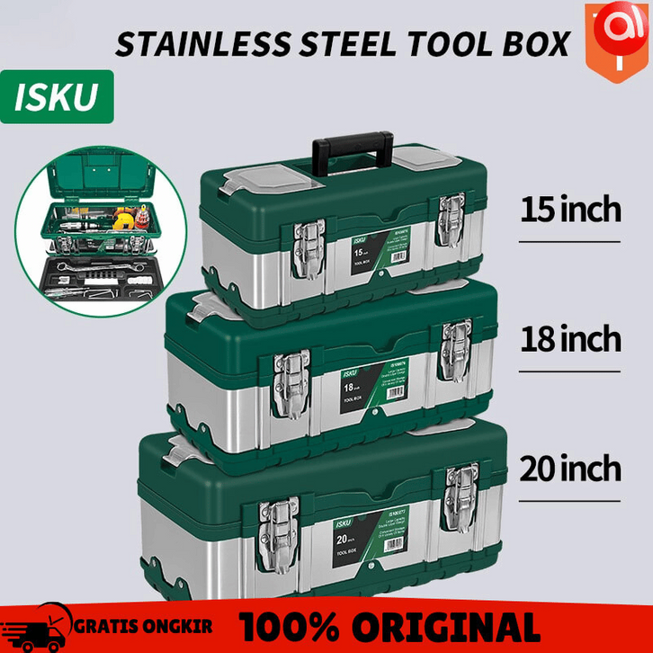 ALAT PERTUKANGAN ISKU Tool Box 15 20'' Besi Baja Kotak Perkakas Besar 20inch Material Stainless Steel Toolbox