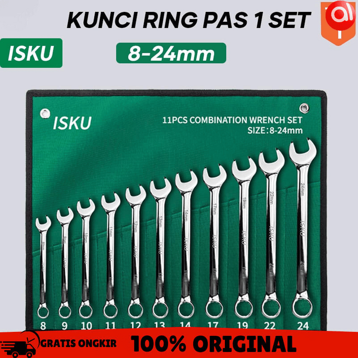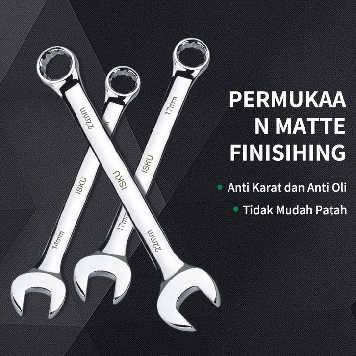 ALAT PERTUKANGAN ISKU Kunci Ring Pas Set 11pcs 8 24mm Bahan Crv Kombinasi Wrench set 8 24mm 11 Pcs Kunci Pas