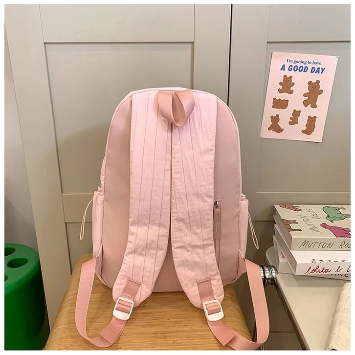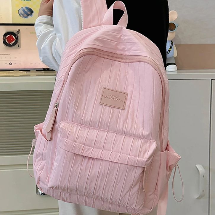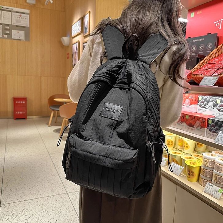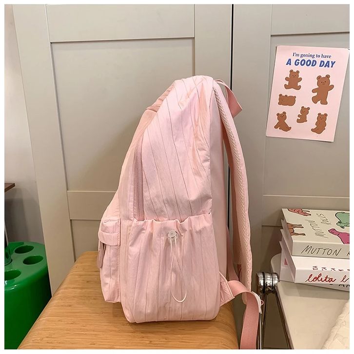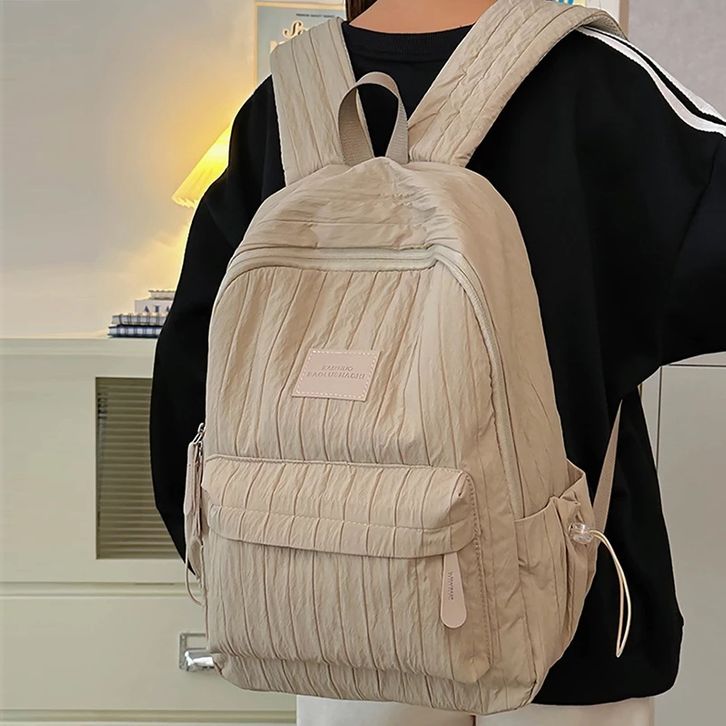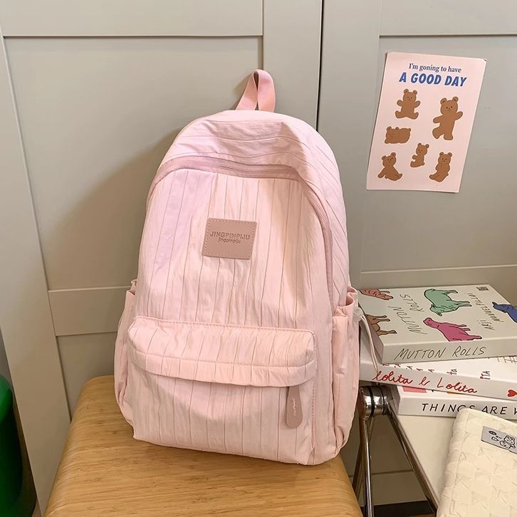 HT-Tas Ransel Santai Wanita Tas Sekolah Remaja Tas Laptop Tas Nilon Bergaris Kapasitas Besar