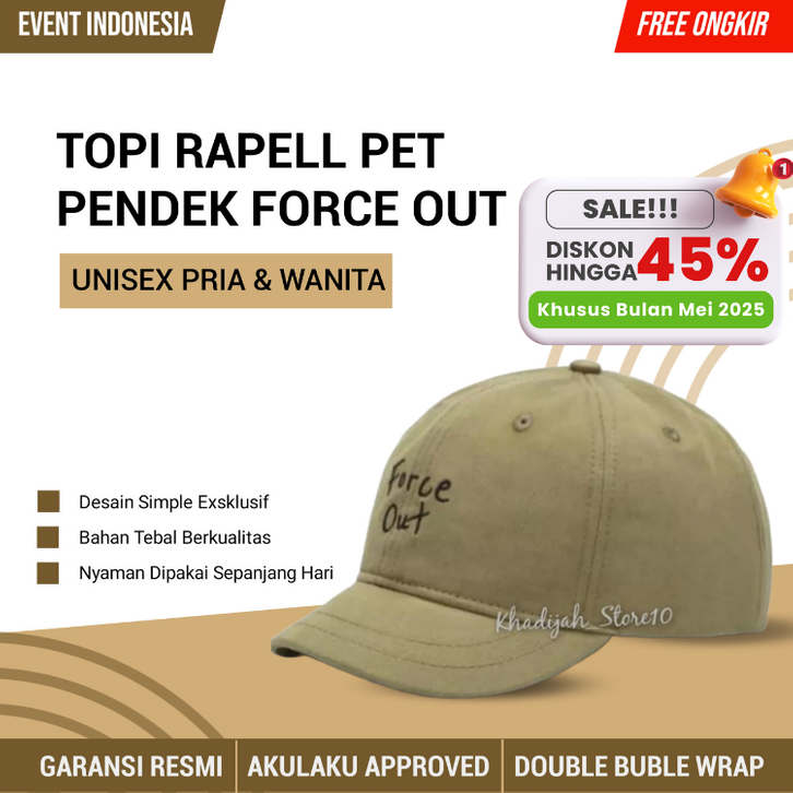 rappel Topi Pet Pendek Force Out laki perempuan Penutup Kepala Topi Korean Style Unisex Ukuran Allsize