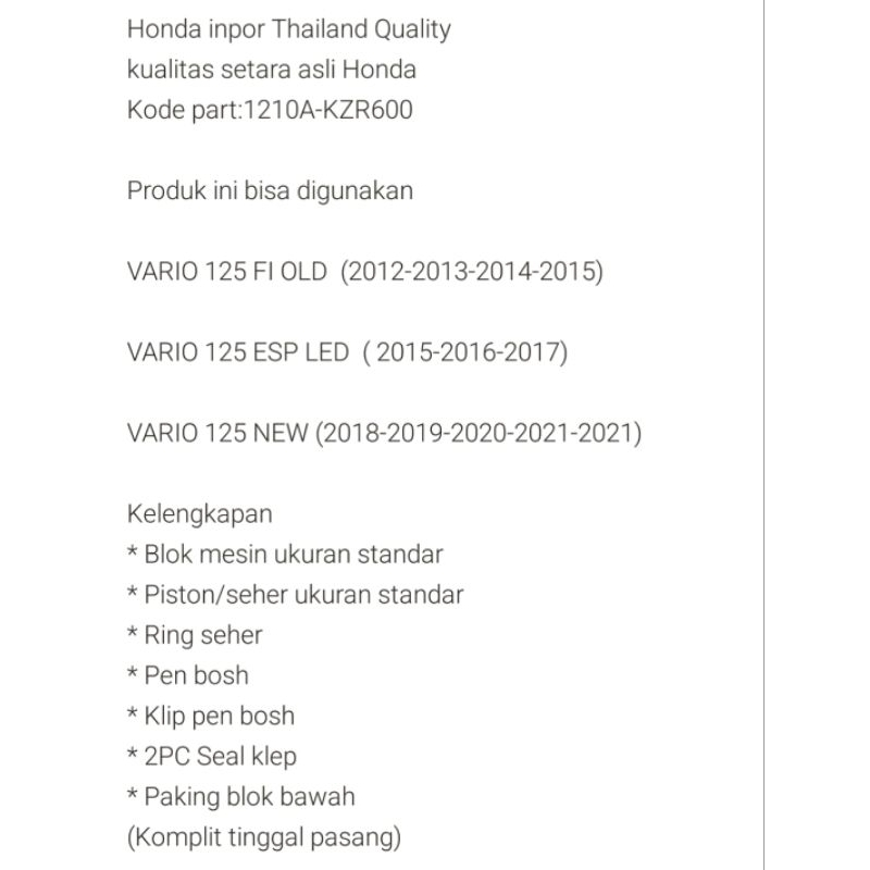 original super BLOK SEHER (Cylinder Komplit KZR) VARIO 125 FI OLD VARIO 125 ESP LED VARIO 125 NEW - THAILAND QUALITY