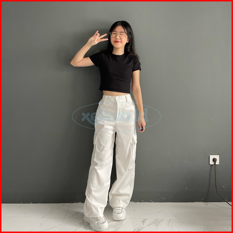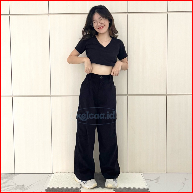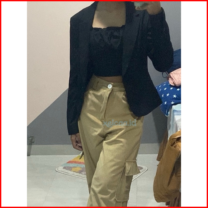Pixie Cargo Pants Celana Kargo Corduroy Wide Leg Pants Kulot Xelcaa