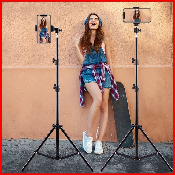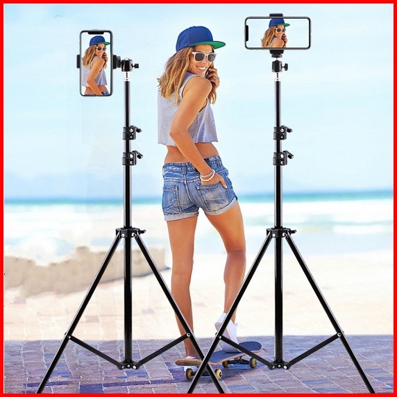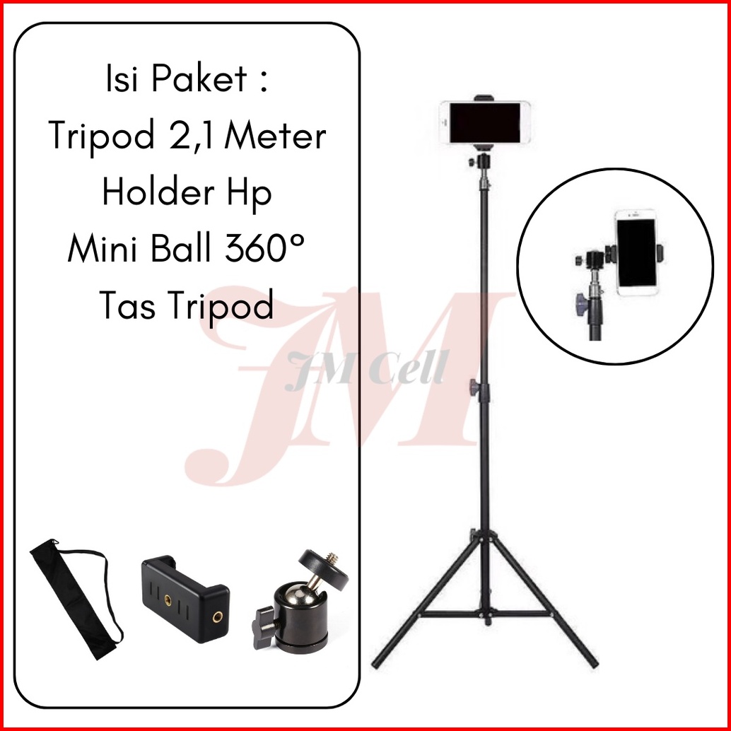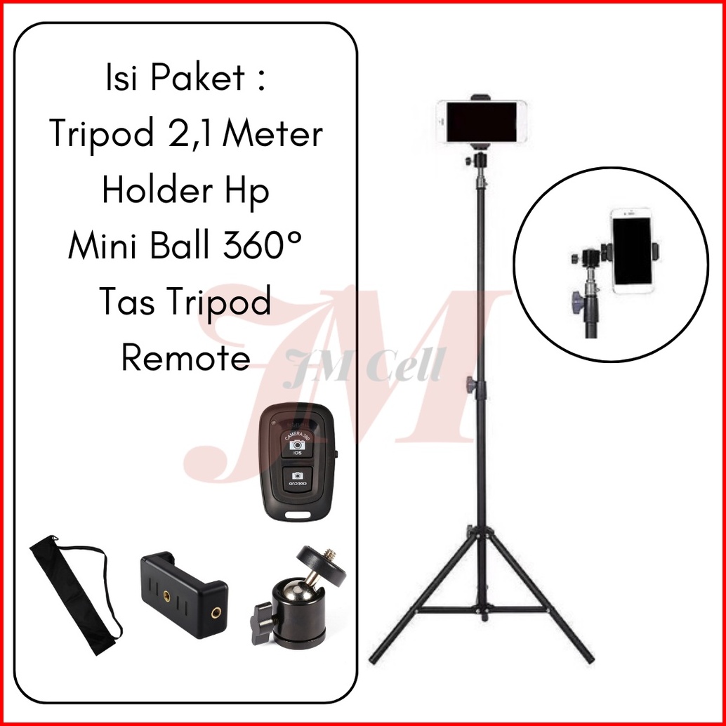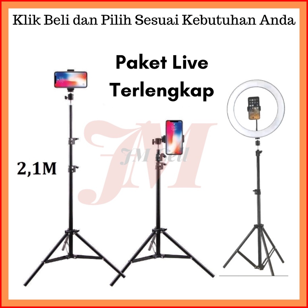 Paket Terlengkap Tripod Hp 2 1 Meter Streaming Tripod For Selfie Konten Video Tripod Kaki Tiga Ketinggian Bisa Diatur