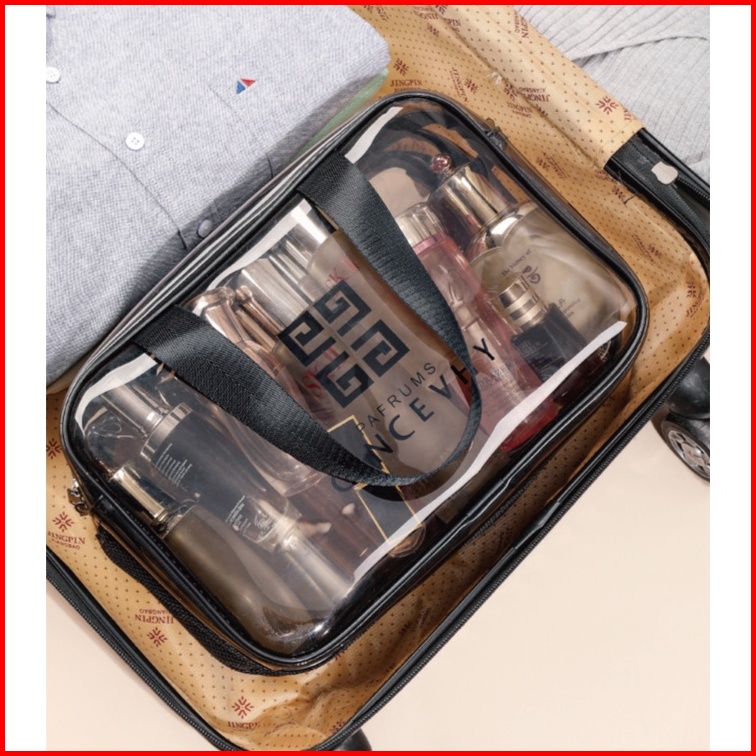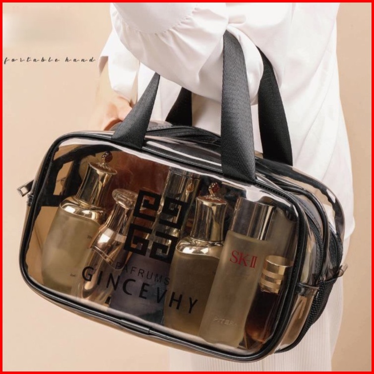Tas Kosmetik Double-layer Jumbo Transparan Tahan Air Kapasitas Besar Portabel Pvc
