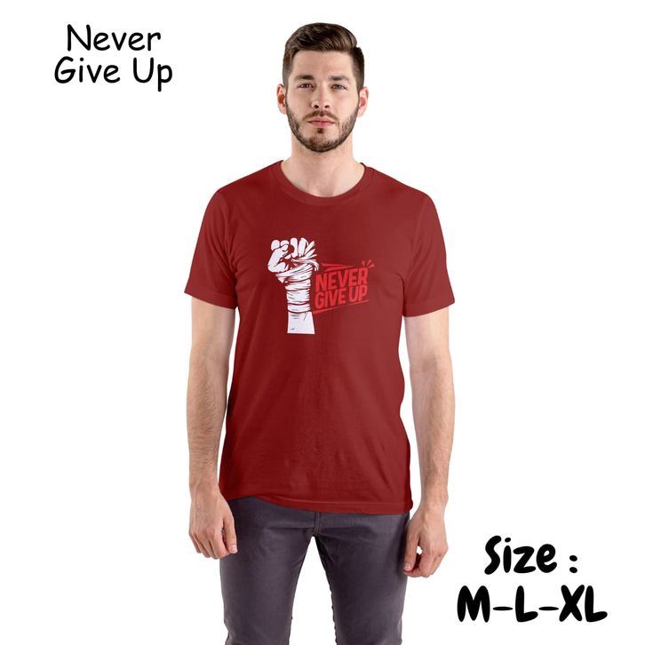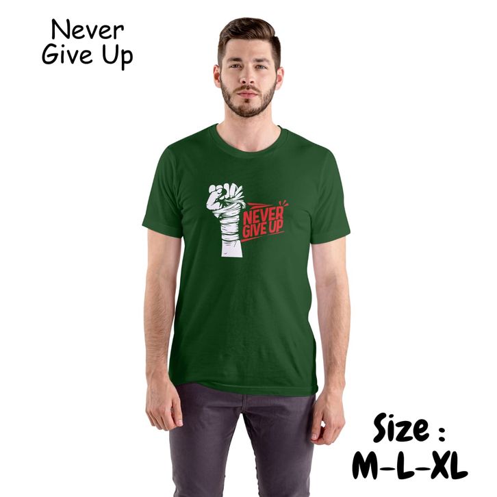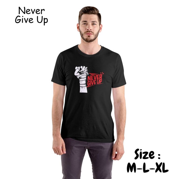 Never Give Up Hand Kaos Pria Dewasa Tshirt Kaos Casual Lengan Pendek Kaos Murah