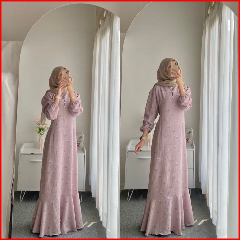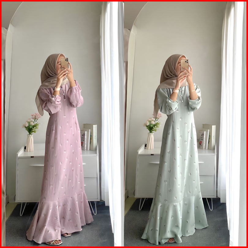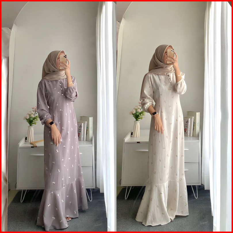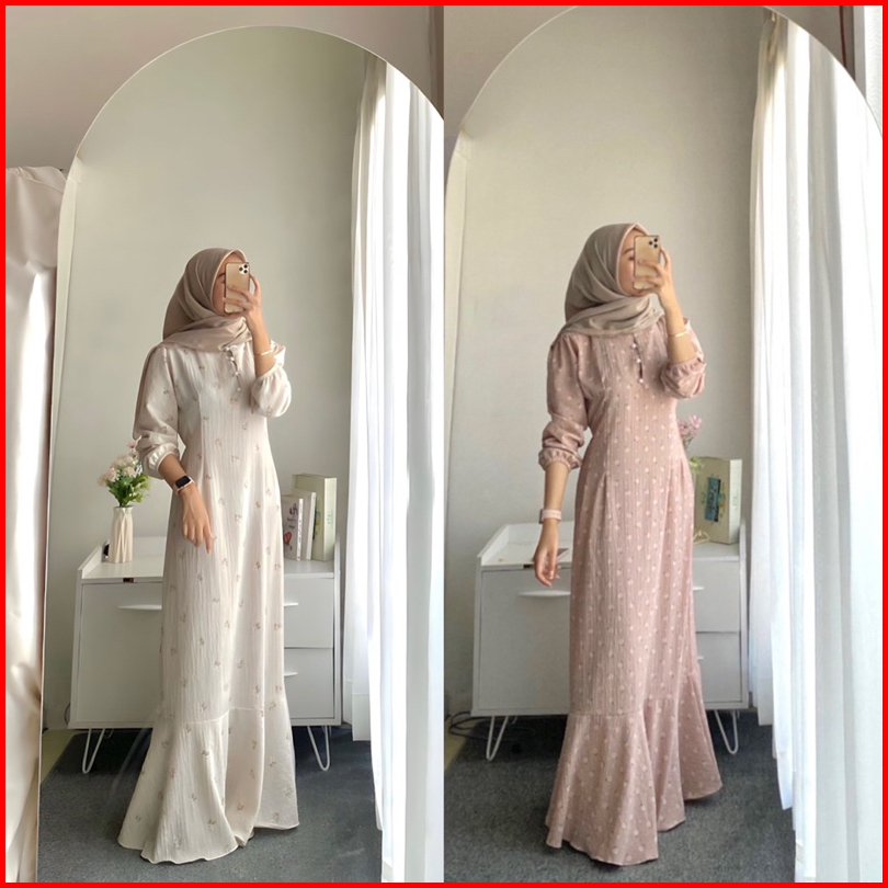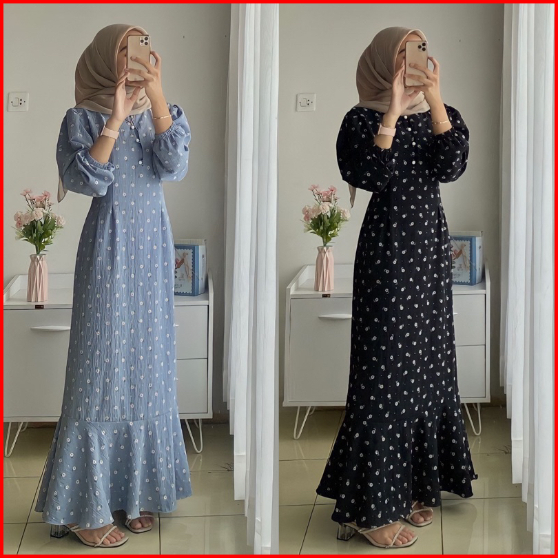 Naima Korean Dress Hijab Friendly Gamis Motif Best Seller Kancing Aktif Tali Kanan Kiri Fi To Xl