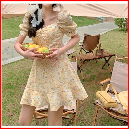 Daisy Dress In Yellow And Pink Dress Casual Kasual Summer Floral Dress Babydoll Dress Dress Rok Kembang Flair Korean Dre