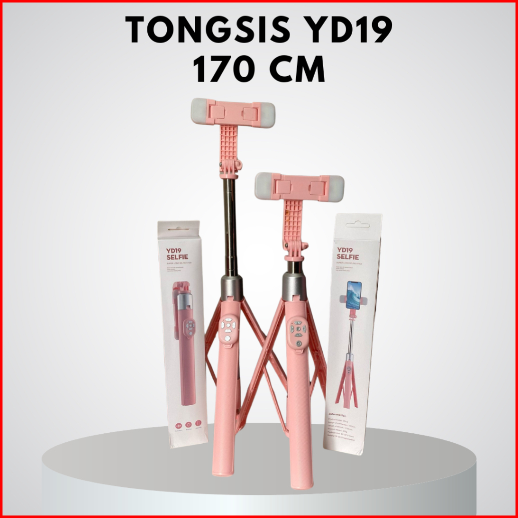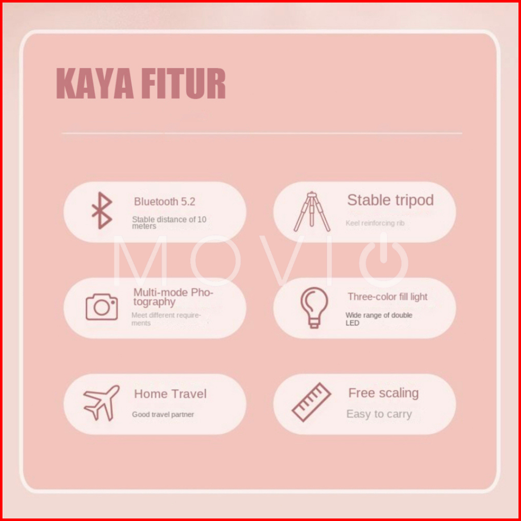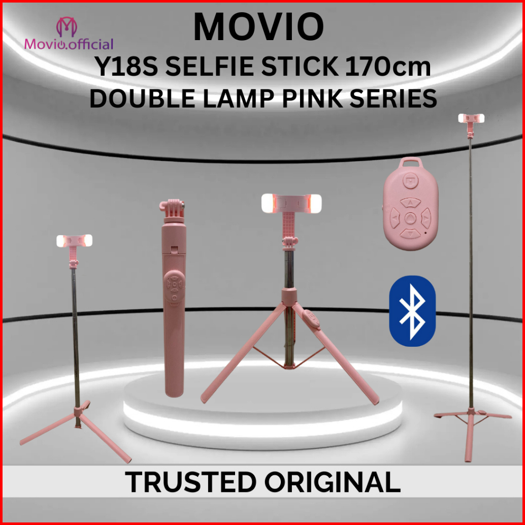 Movio - Y18s Tripod Bluetooth 170cm Double Lamp 2 Lampu Tongsis Selfie Stick Holder Y18s Untuk Handphone Pink Series