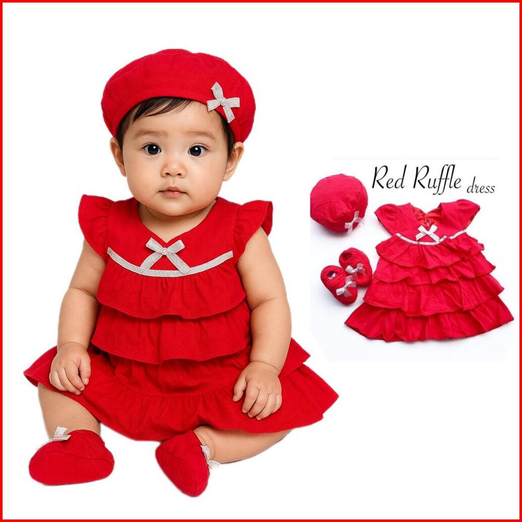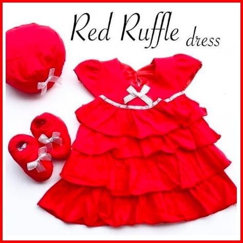 Anak Dress Bayi Topi Bayi Dress Cantik Cewe Lucu Babeebabyshop Red Ruffle Dress Flamingo Red Kaureen Wei Wei Meihua Qiao