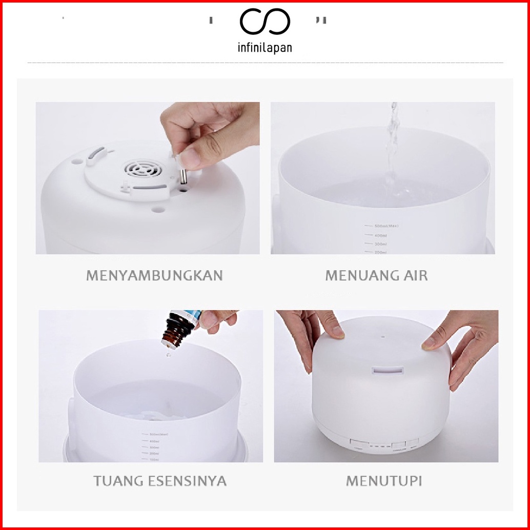 Produk Asli Infinilapan Brand Lokal Humidifier Air Diffuser 500ml Remote Aromatherapy 7 Color Led