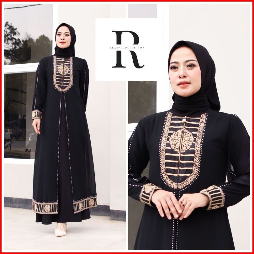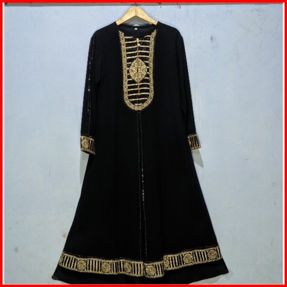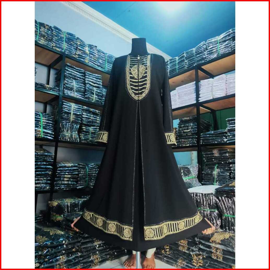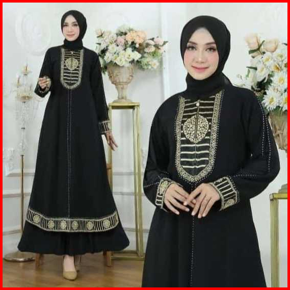 Gamis Abaya Hitam Turkey Bahan Jersey Mix Ceruty Bordir Baju Busana Maxi Dress Muslim Wanita - Sanghai Busui