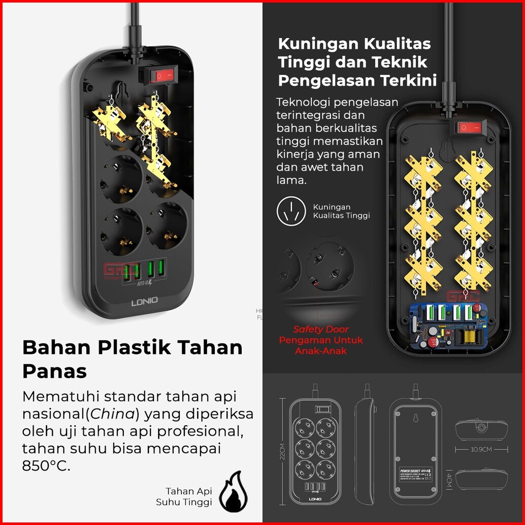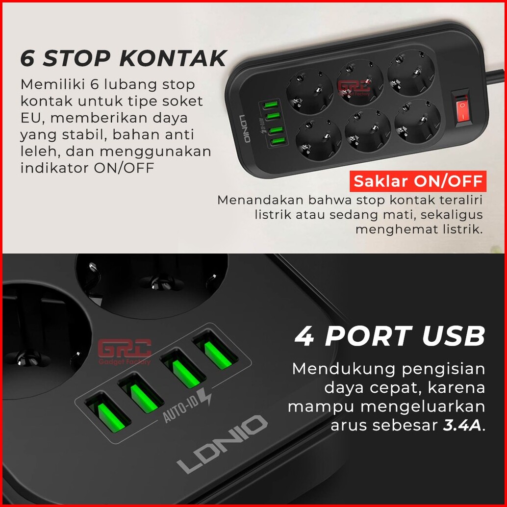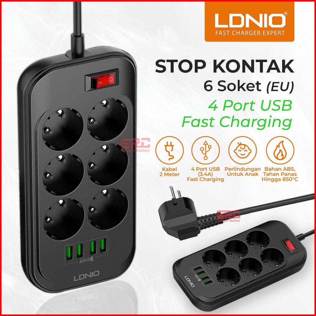 Stop Kontak 6 Power Socket 4 Usb Charger Colokan Listrik