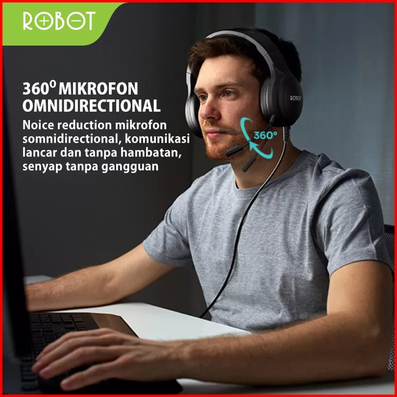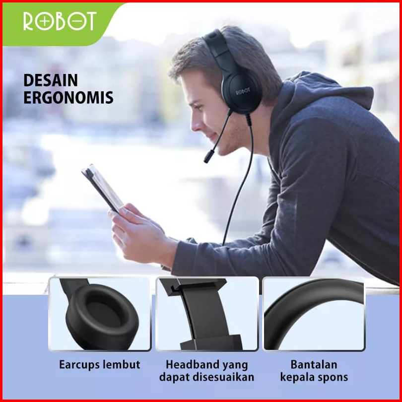 Robot Headset Wired Hp Rh-p20 Headphone Jack Audio 3 5mm With Mic Double Headband Garansi Original
