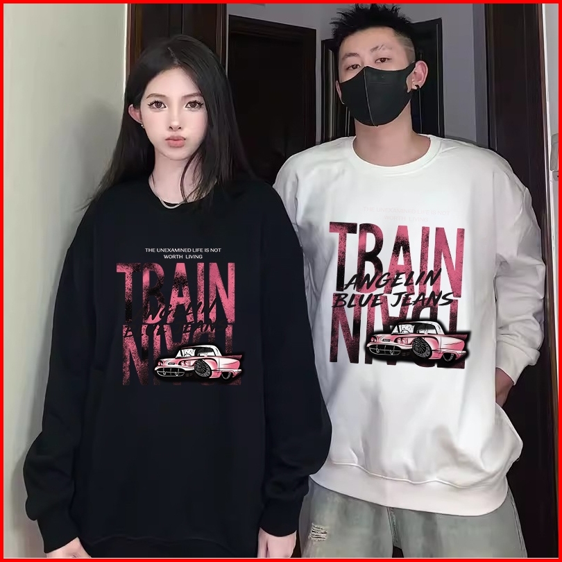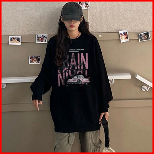 Sweater Lengan Panjang Retro Pink Car Korean Style Baju Couple Pasangan Sweater Pria Baju Kaos Lengan Switer Wanita Over
