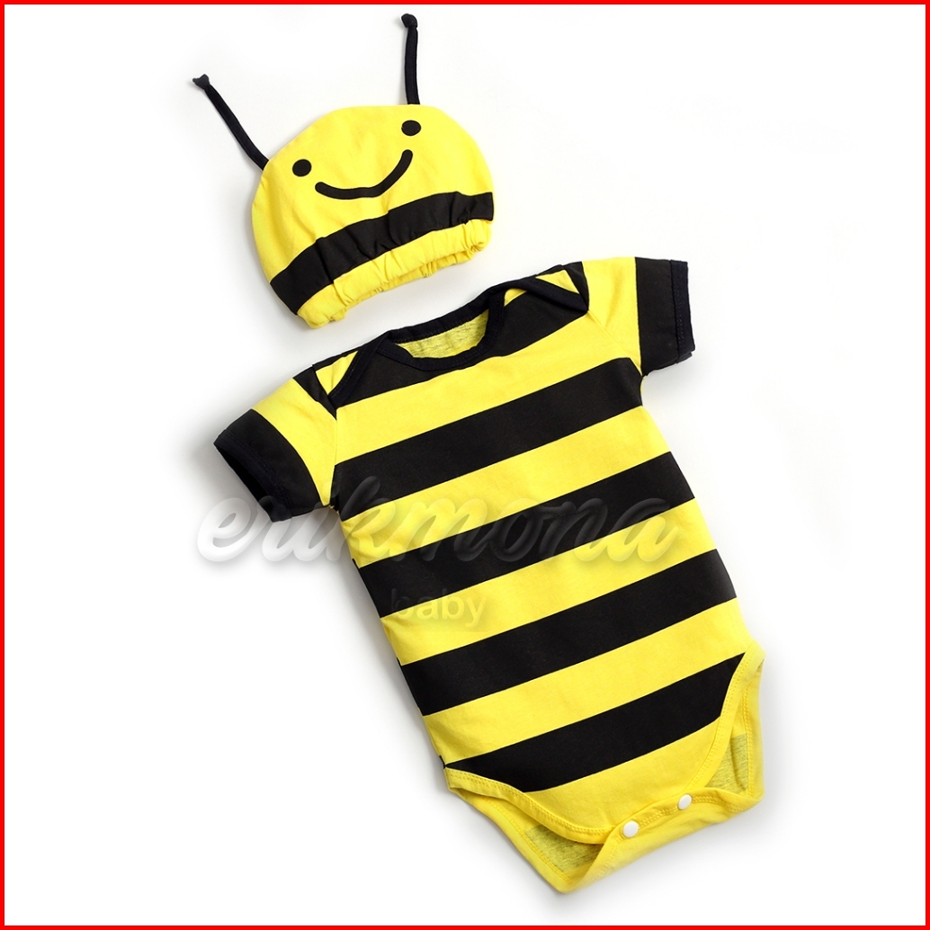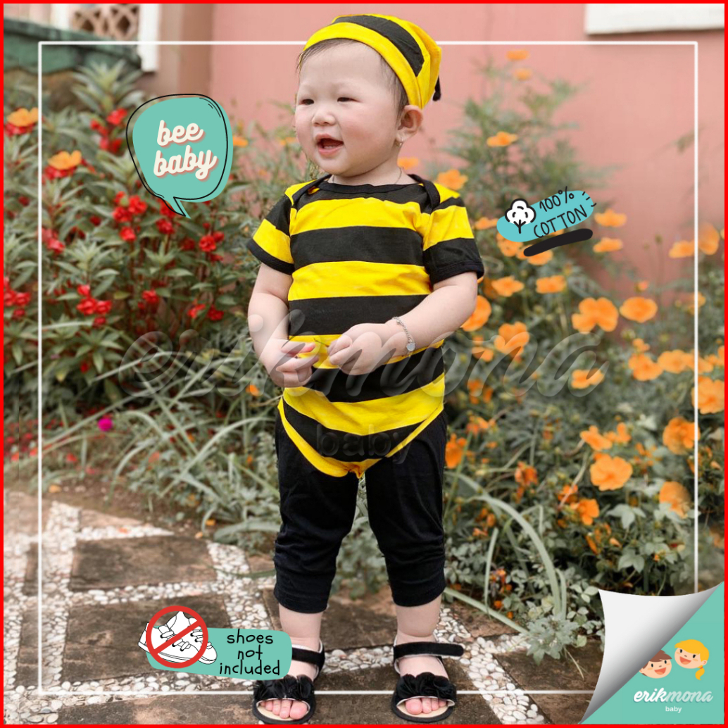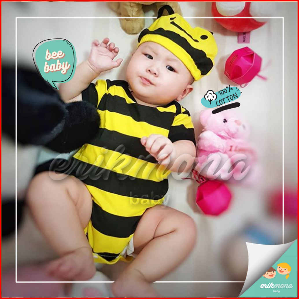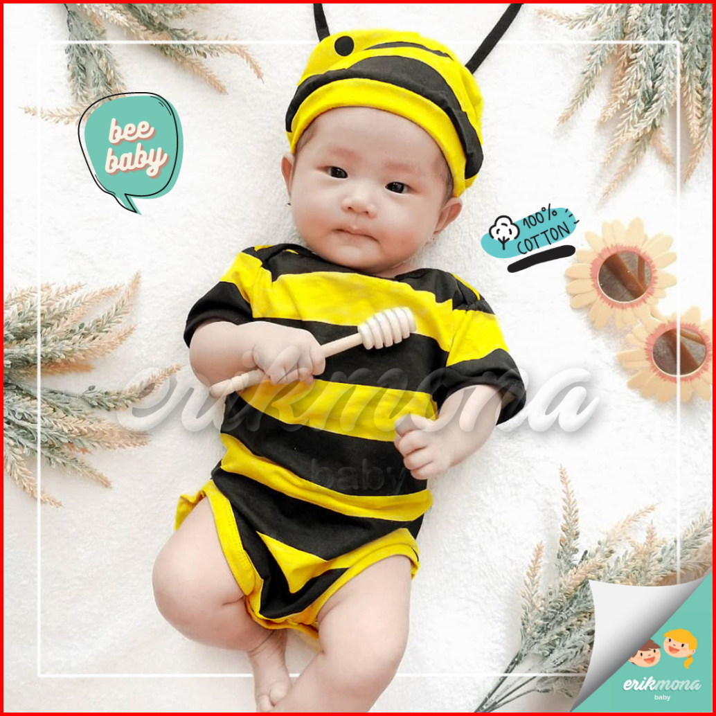 Ermon Baby - Jumper Bayi Laki Laki Perempuan Jumper Baby Cowok Cewek Lucu Karakter Lebah Bee Topi Usia 0 - 12 Bulan