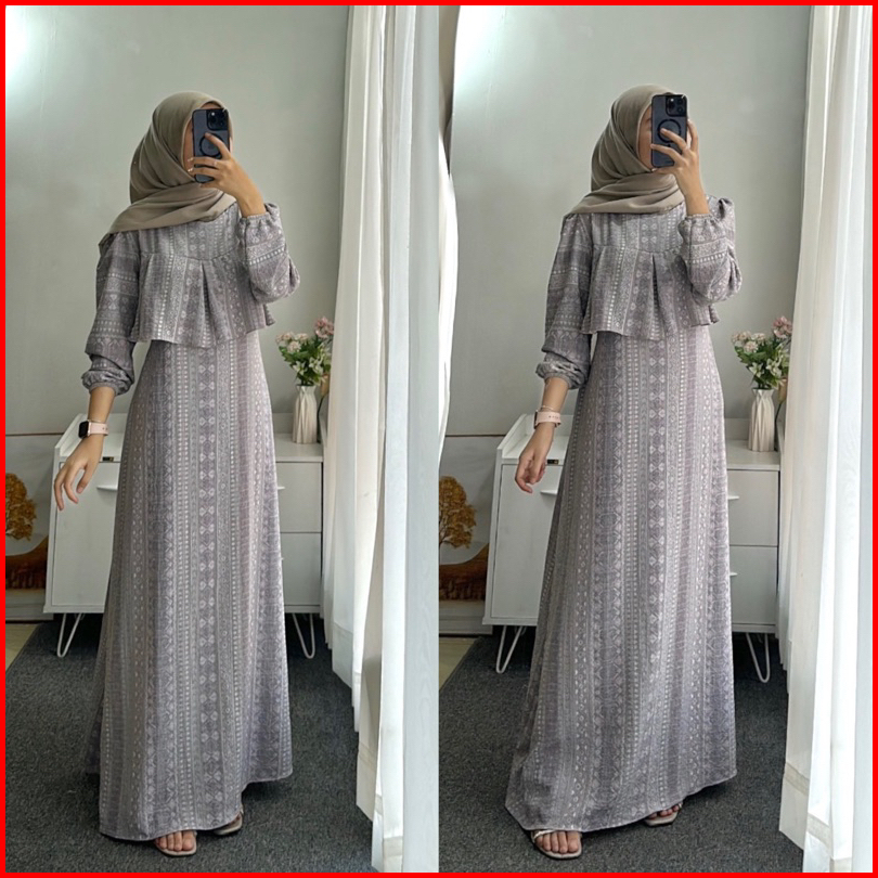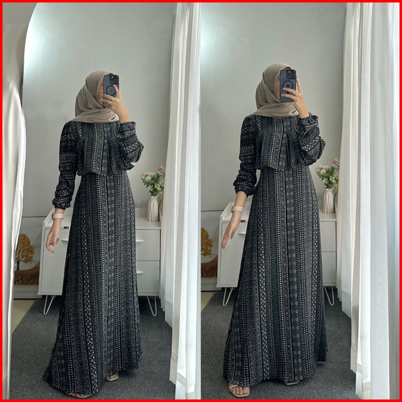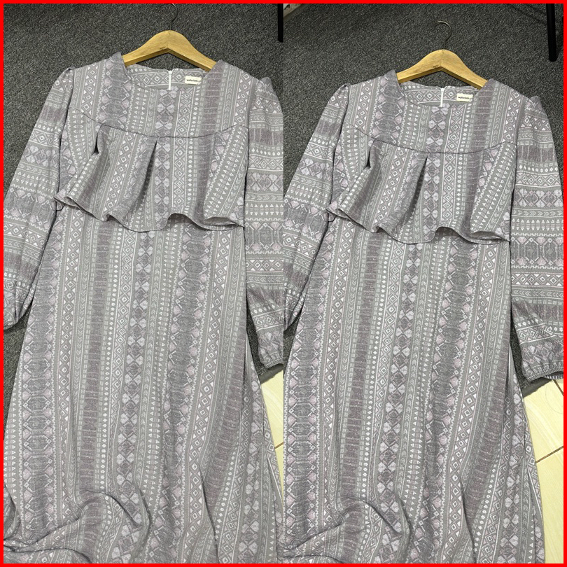 Ready Stock Kamila Dress Lebaran Etnik Busui Friendly Fit To Xl Resleting Di Balik Ruffle Ada Tali Belakang