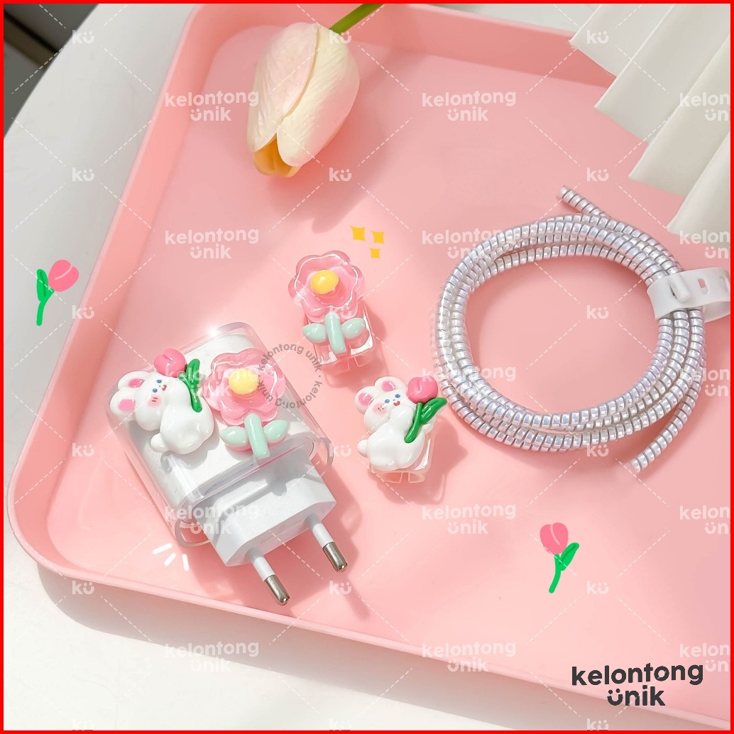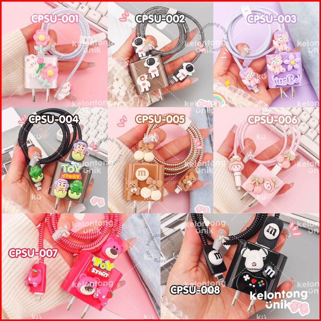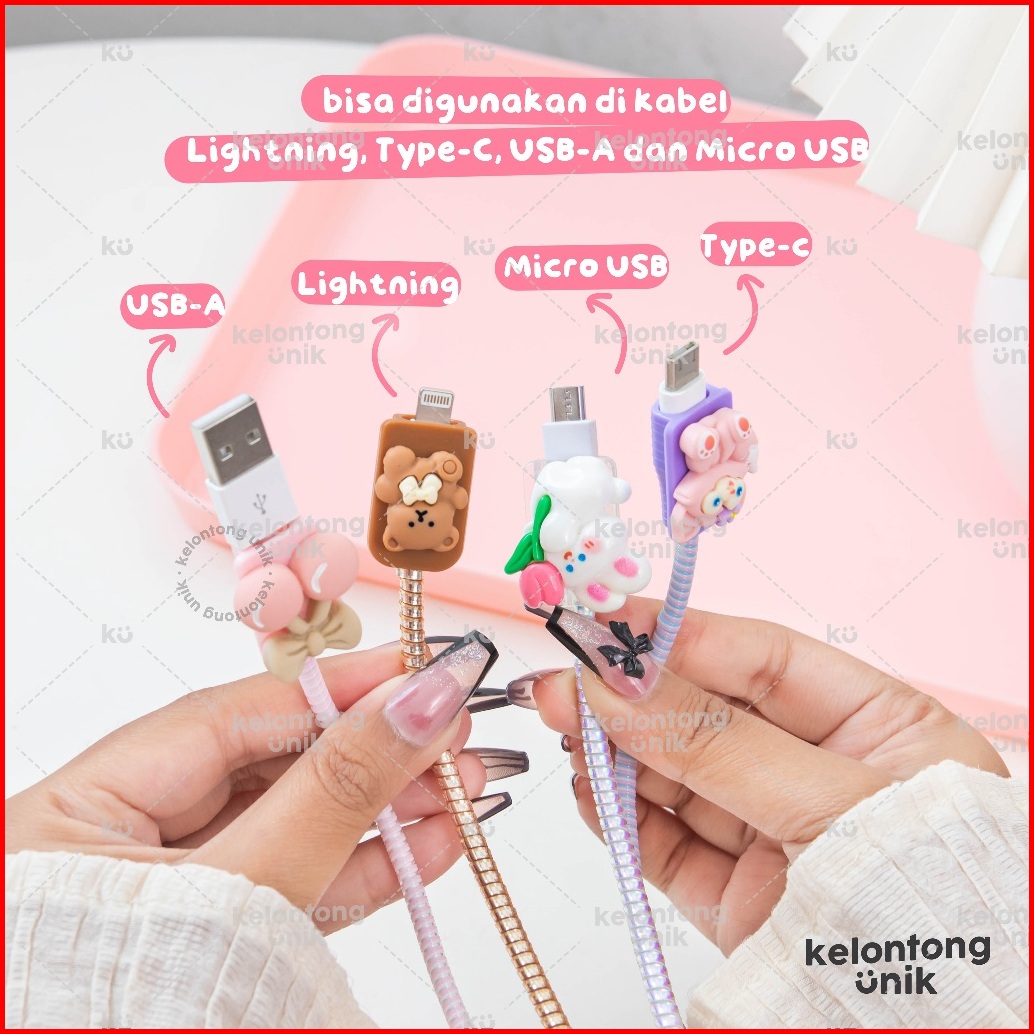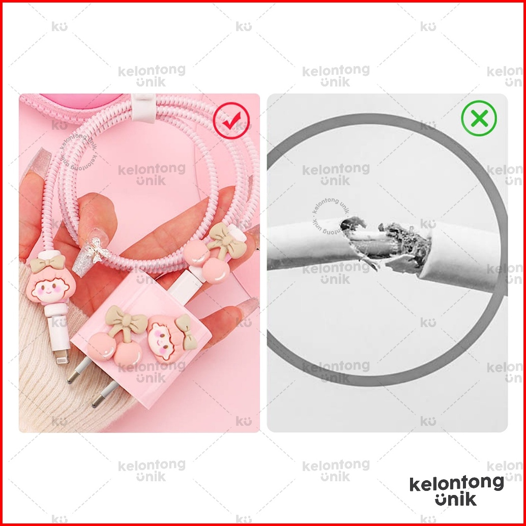 Kelontong Unik - Set Paket Cover Pelindung Kepala Kabel Charger Spiral Cable Set Protector - Compatible For Iphone Rapat