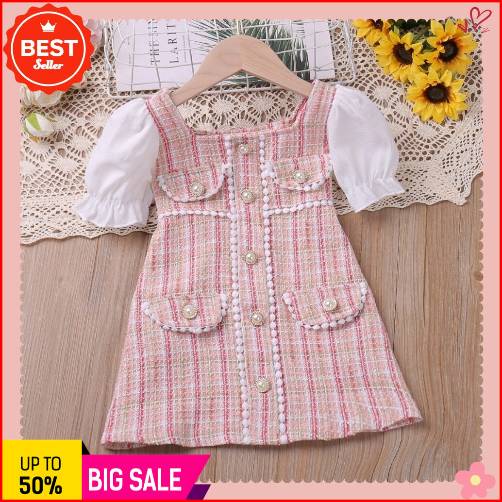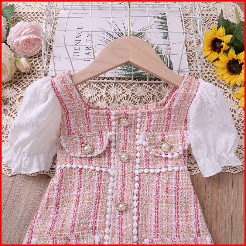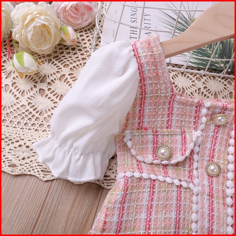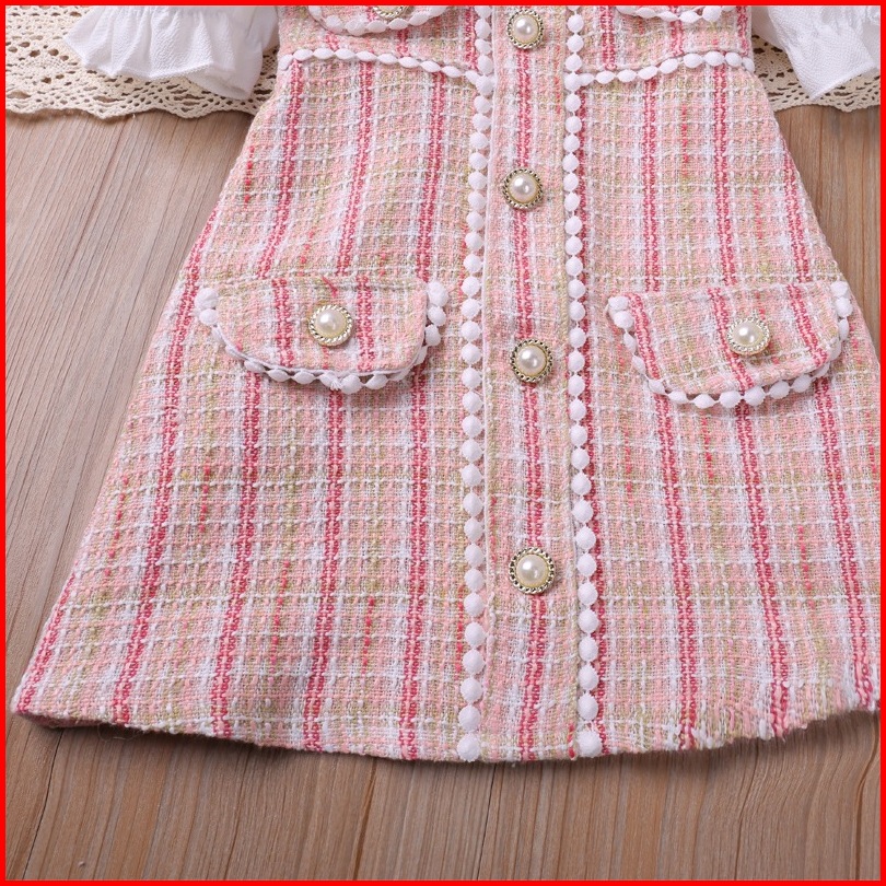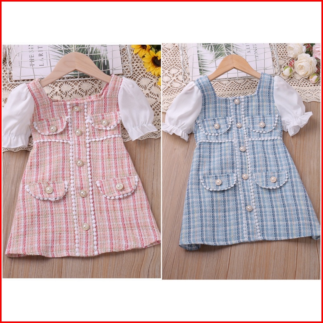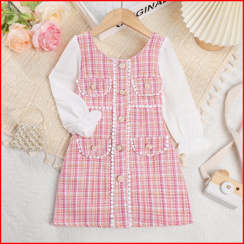 Meandboss Dr50 17 Dress Anak Perempuan Mini Tweed Wolley Hounstud Tebal