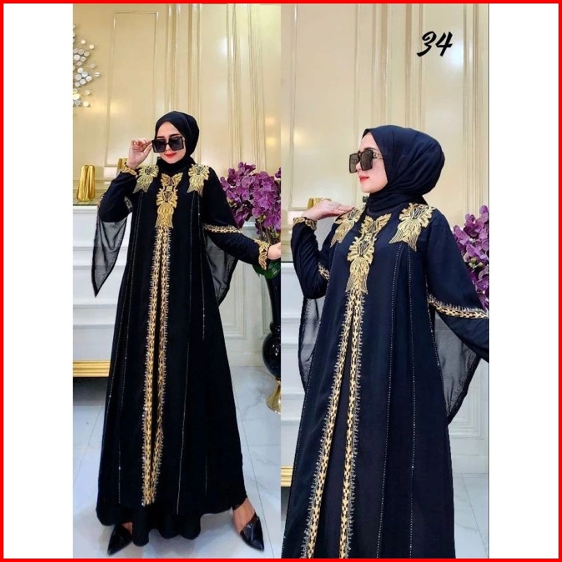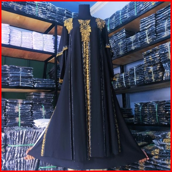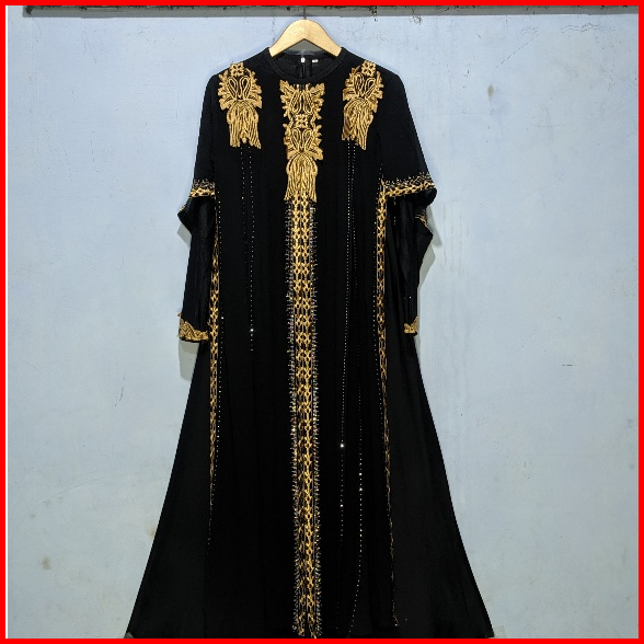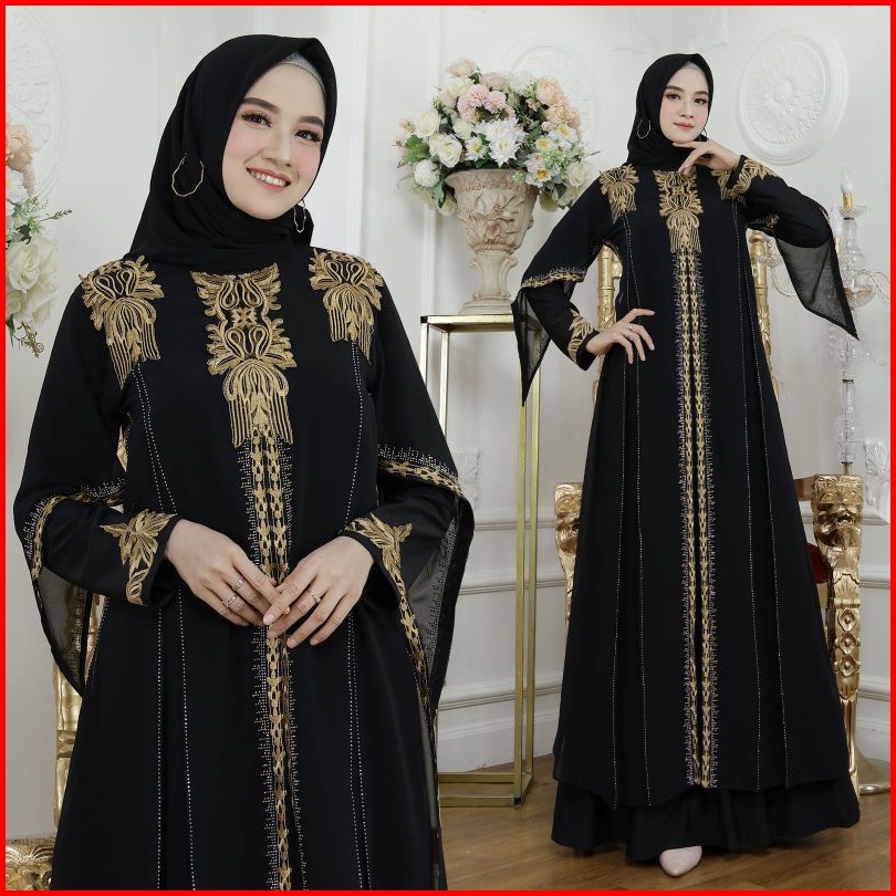 Gamis Abaya Hitam Turkey Bahan Jersey Mix Ceruty Bordir Baju Busana Maxi Dress Muslim Wanita - Rosegold