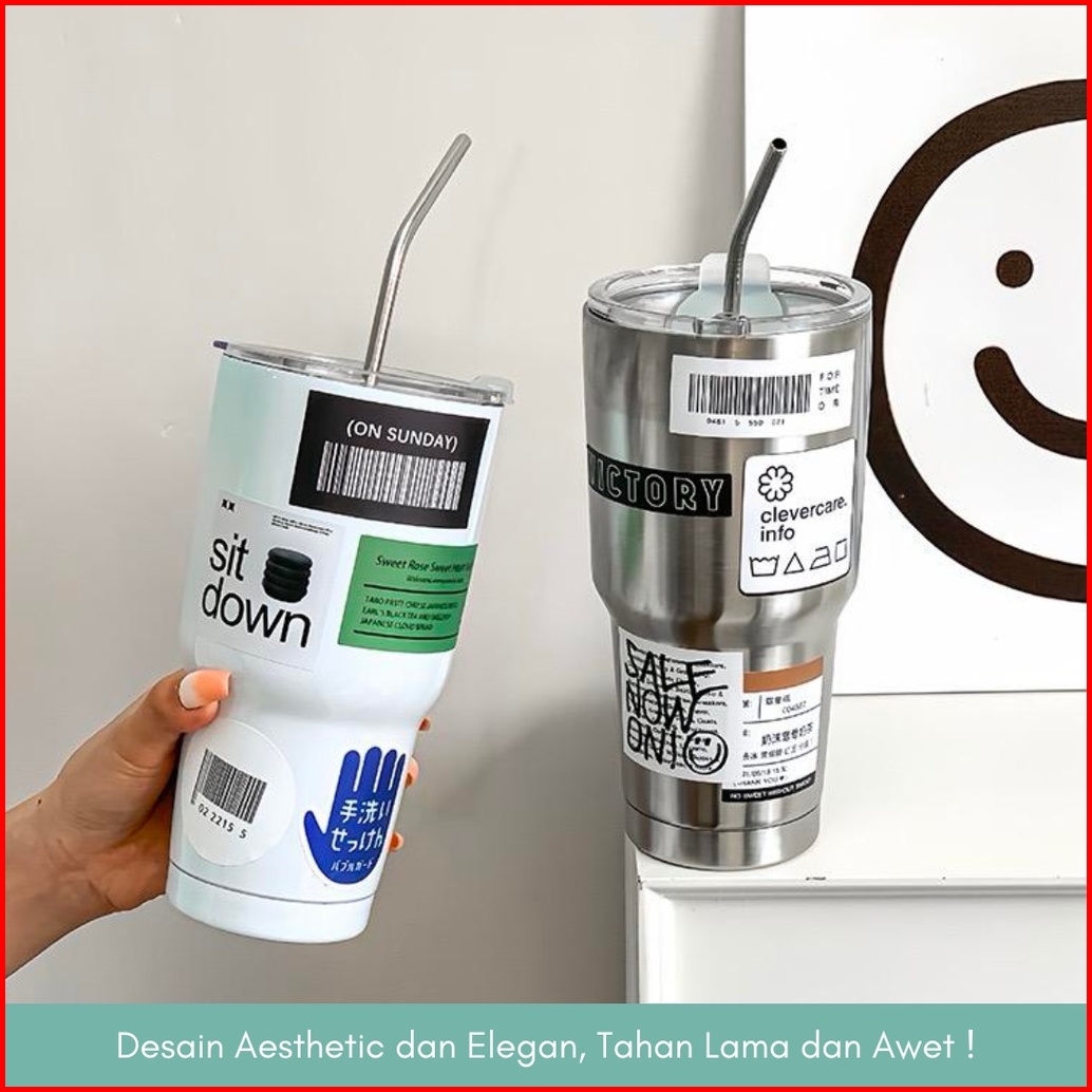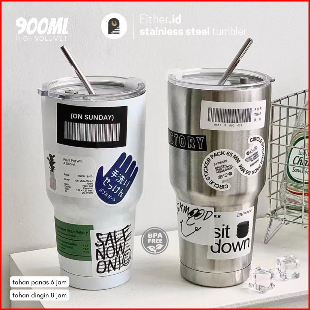 Either.id - Stainless Steel Cangkir Tumbler Kopi Cup Stainless Steel Portabel Botol Minum Aesthetic Termos Portable Tumb