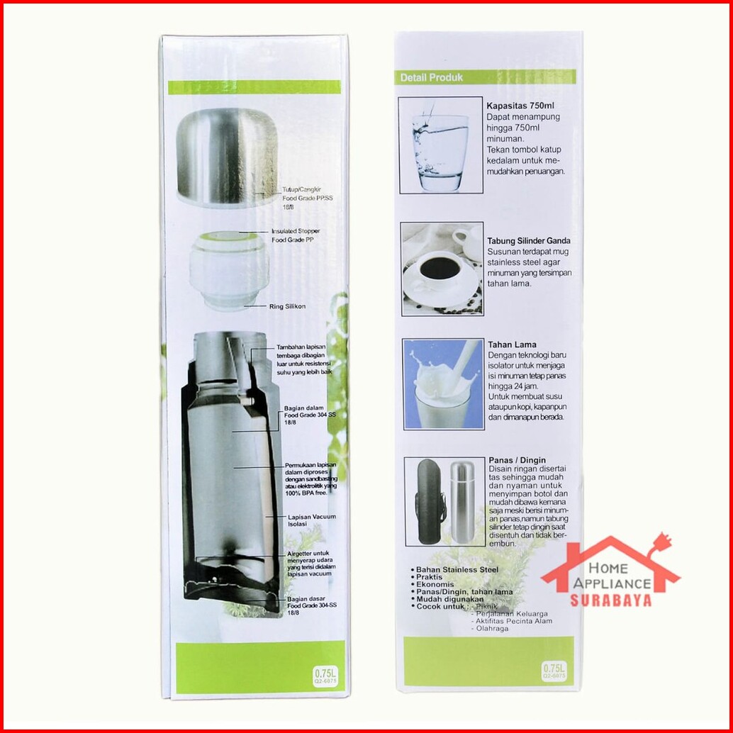 Thermos Termos Air Panas Dingin Q2 0.75 Liter 750 Ml Q2-6075 Q2 6075 Vacuum Flask