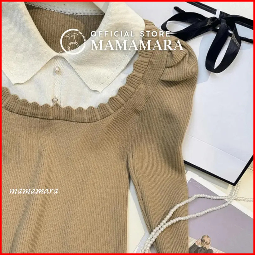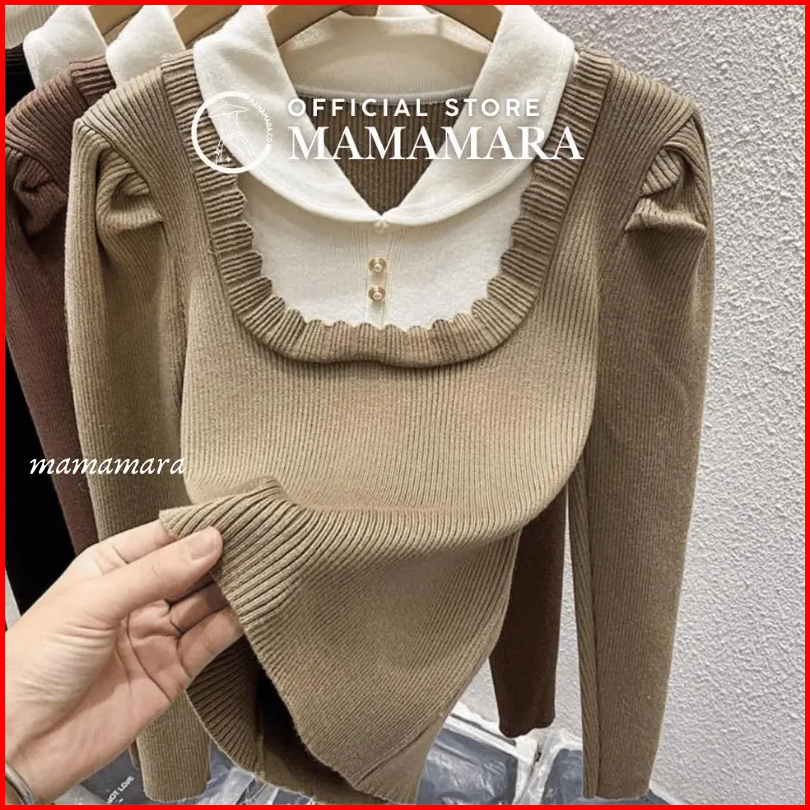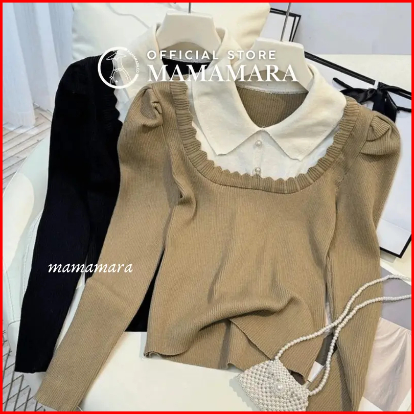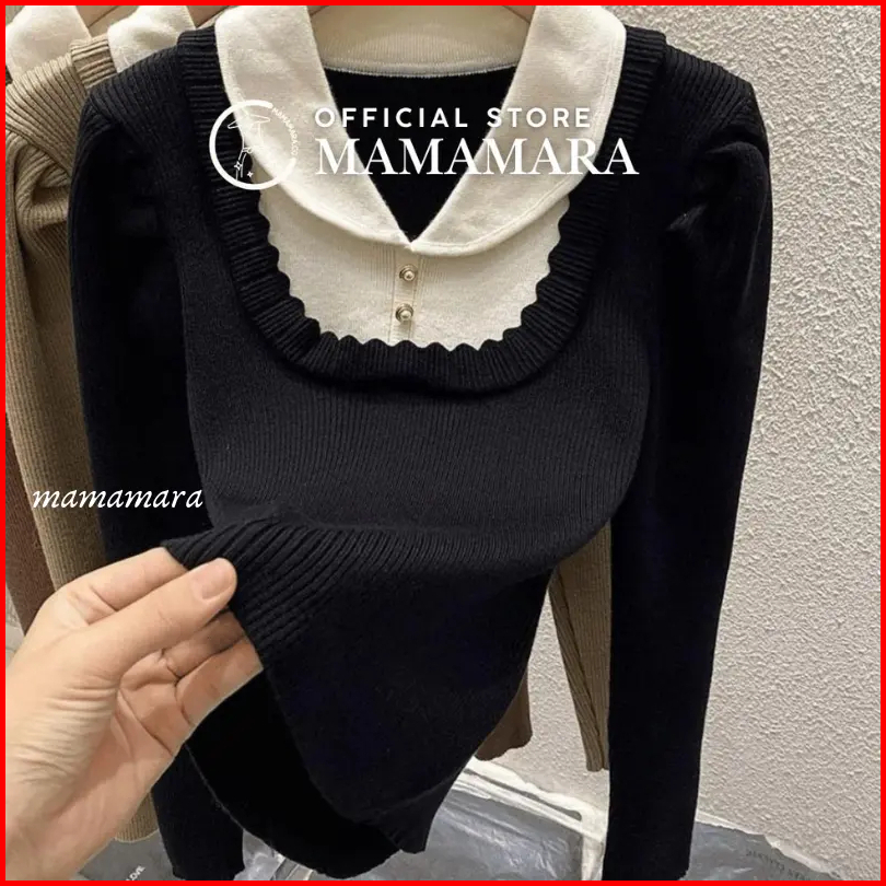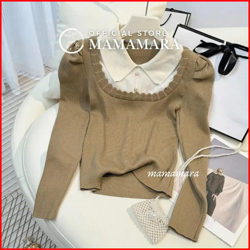 Mamamara - Atasan Wanita Lace Kerah Rajut Knitwear Inner Fit Body Wol Santai