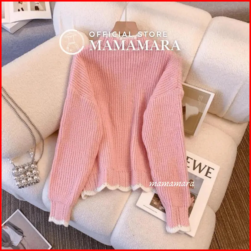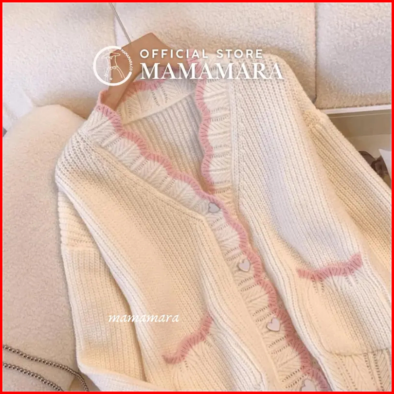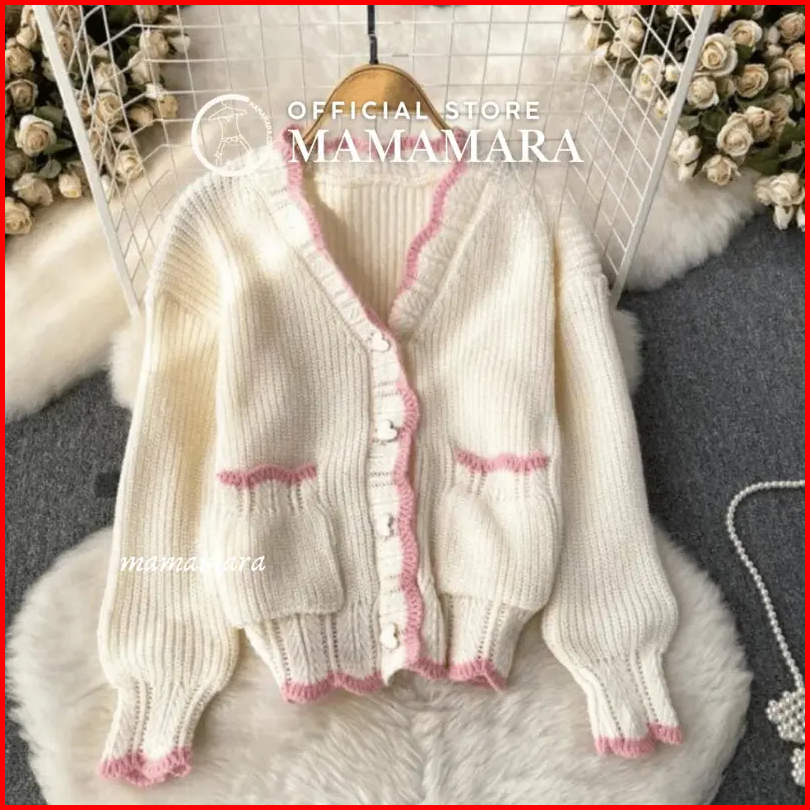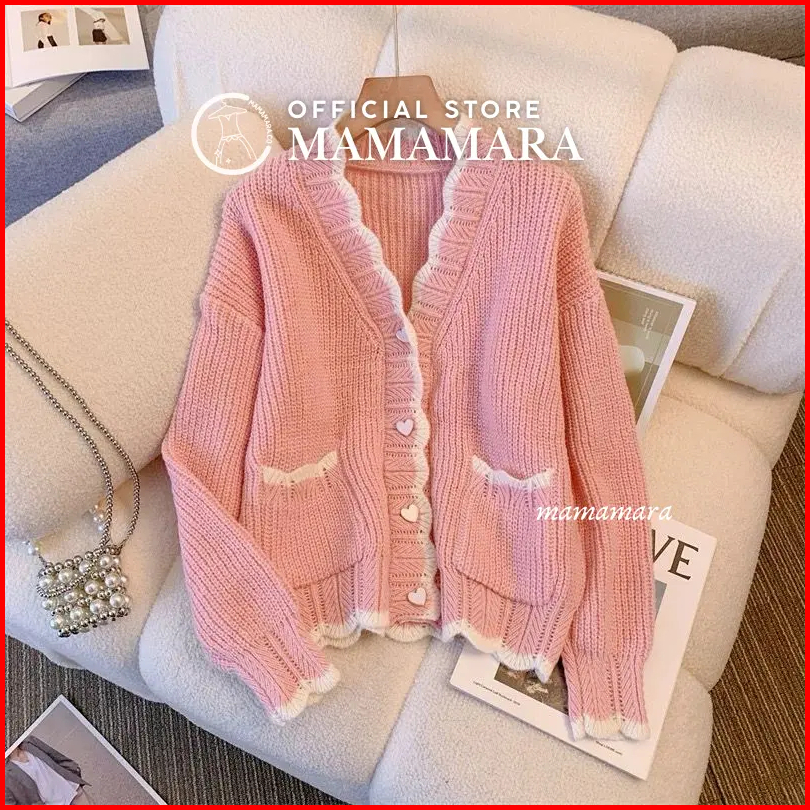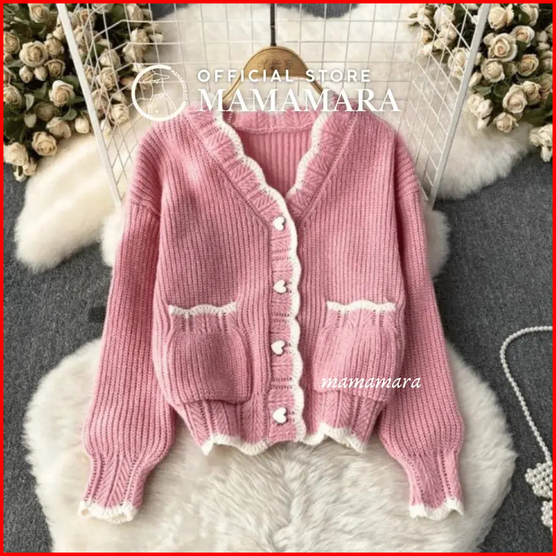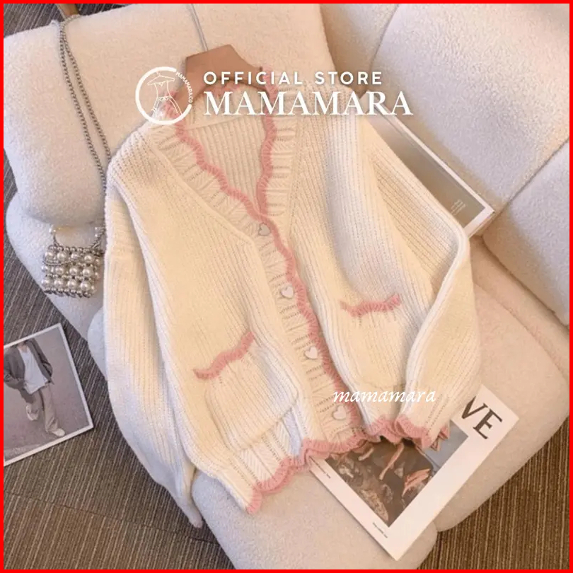 Mamamara - Cardigan Ruffle Pocket Kancing Love Wol Santai V-neck Outer
