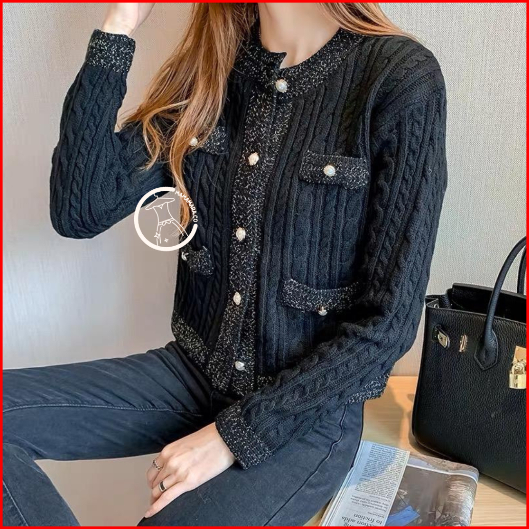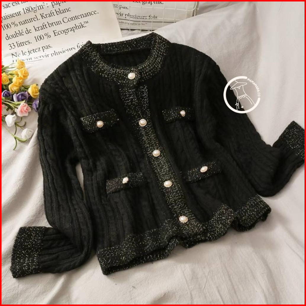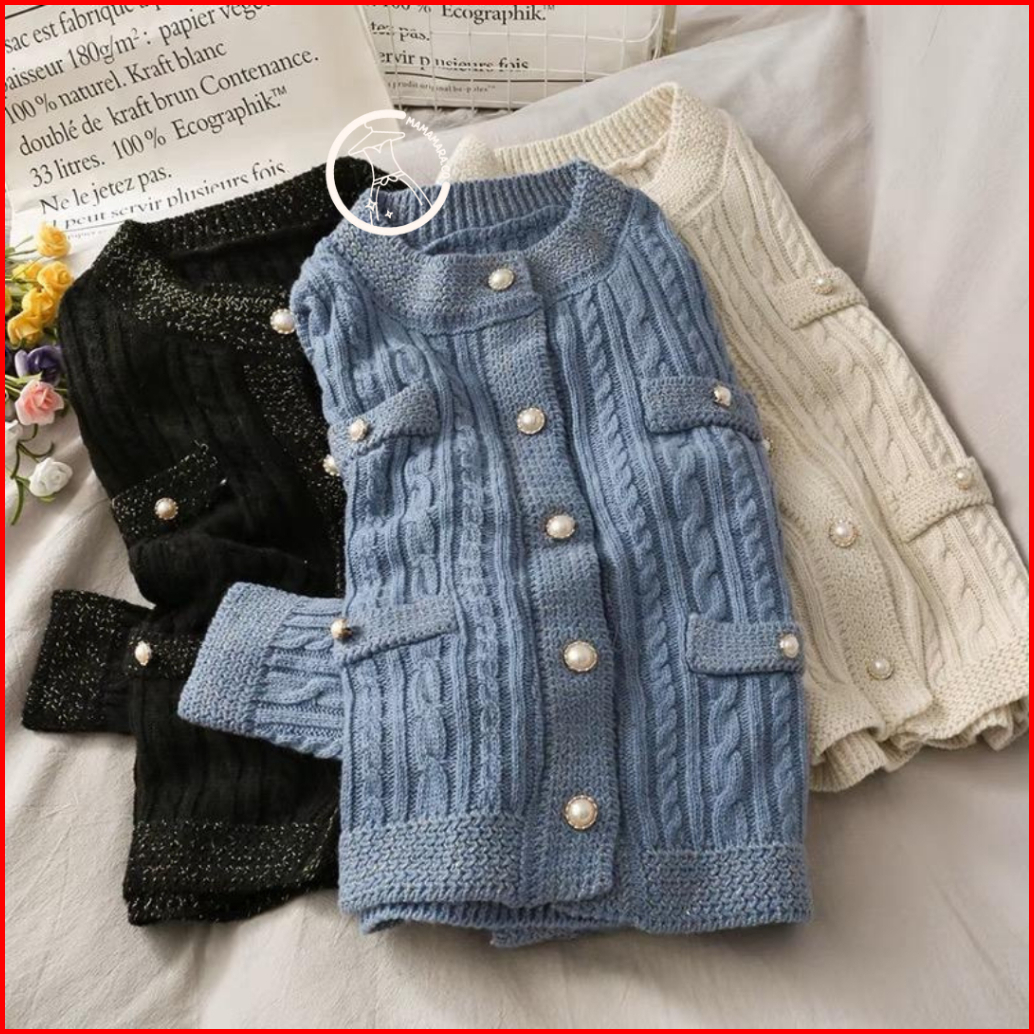 Mamamara - Cardigan Wol Rajut Korean Style Premium Lis Gliterry Baju Panjang Knitwear Atasan Kancing Sweater Kardigan Le