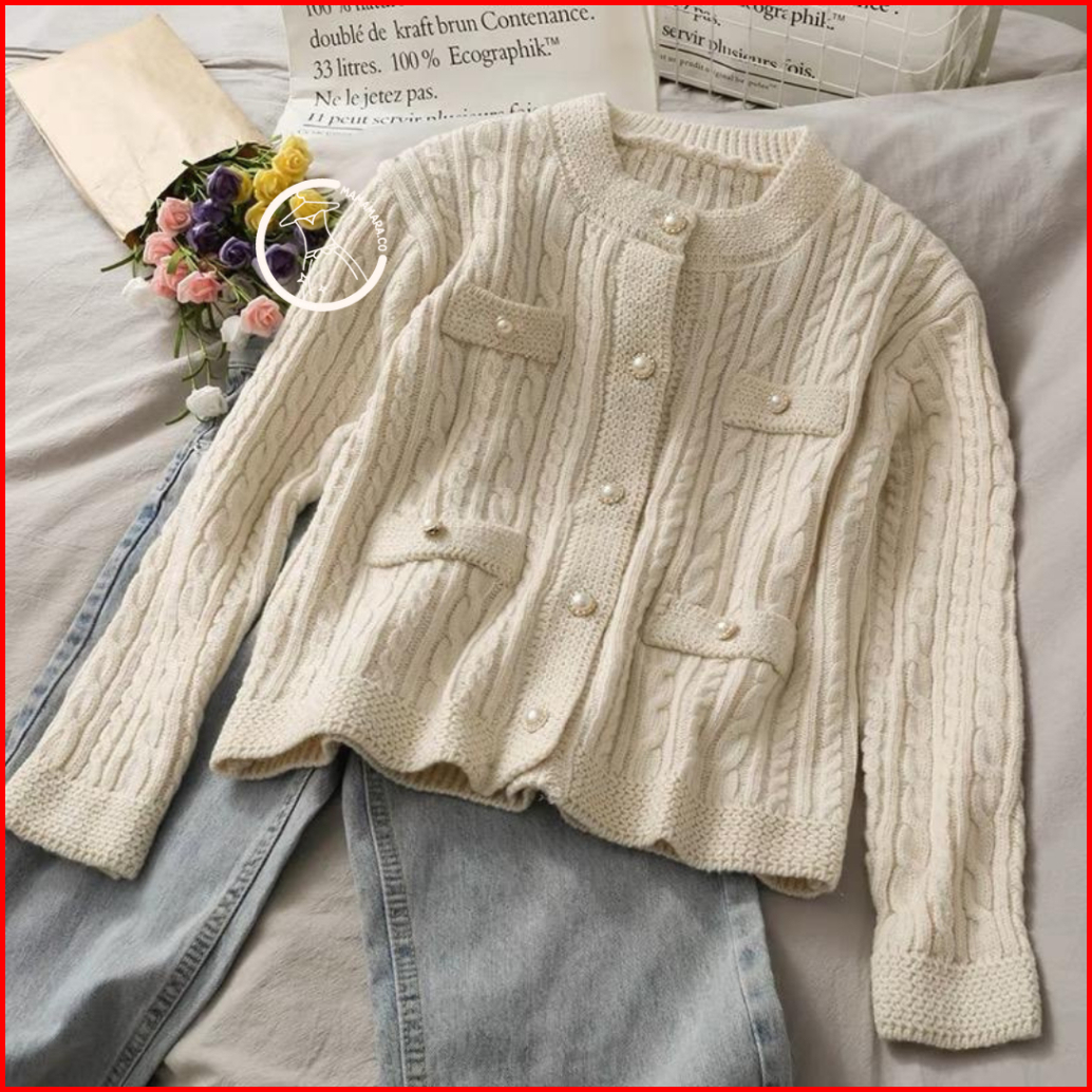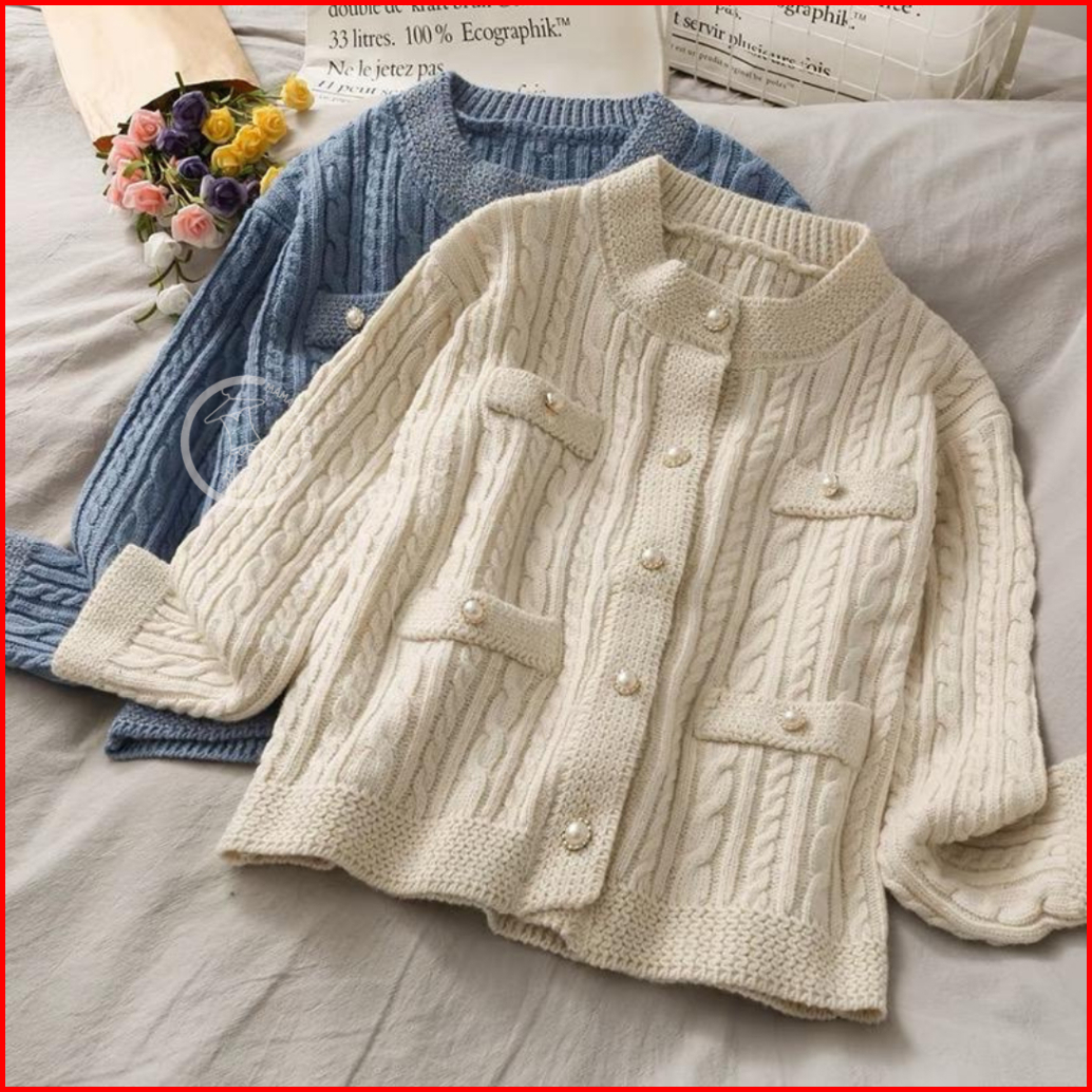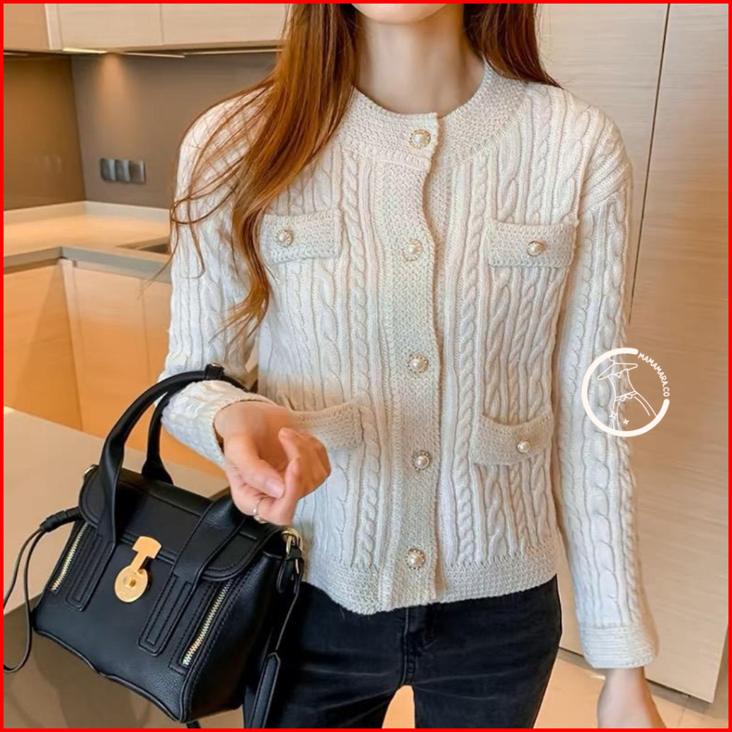 Mamamara - Cardigan Wol Rajut Korean Style Premium Lis Gliterry Baju Panjang Knitwear Atasan Kancing Sweater Kardigan Le