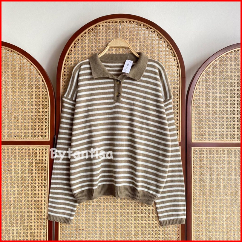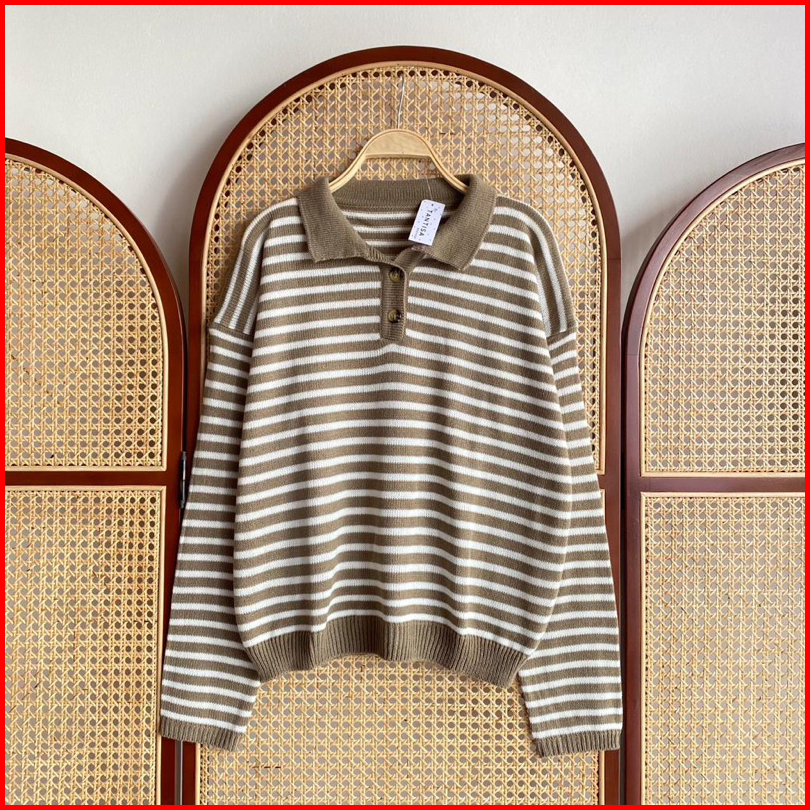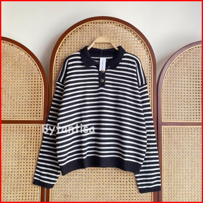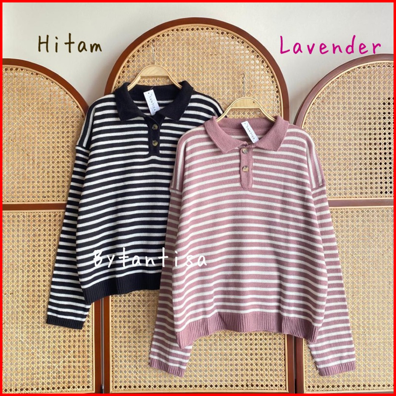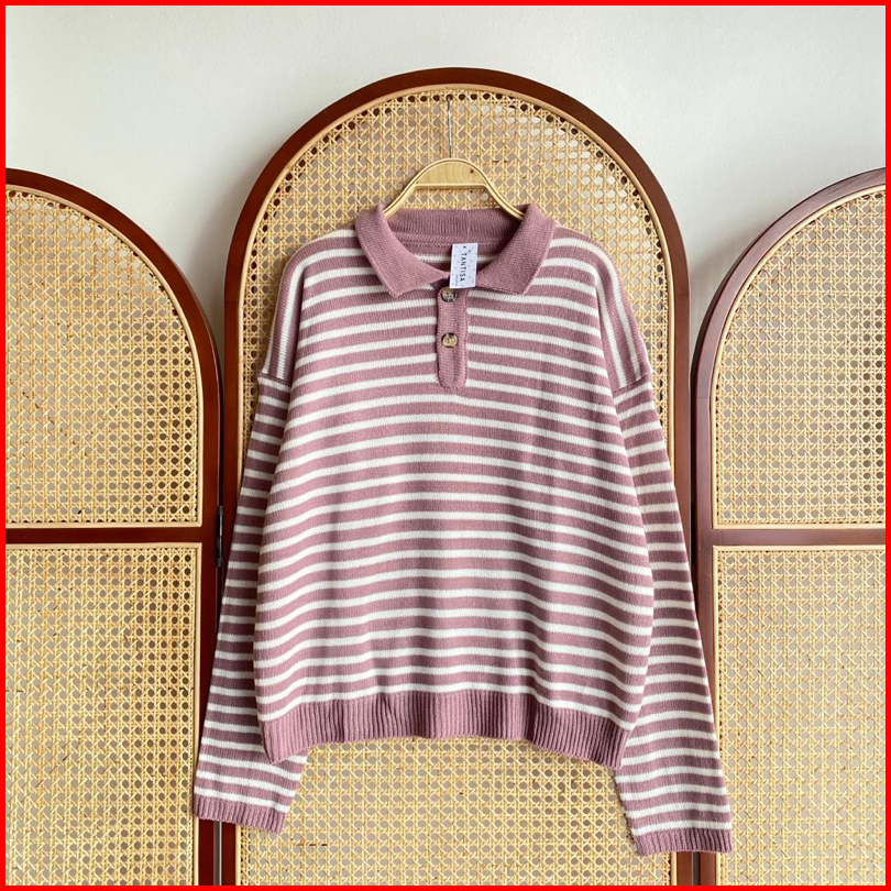 Sweater Polo Motif Garis Striplyns