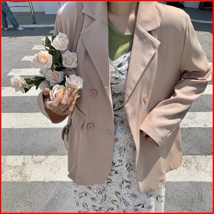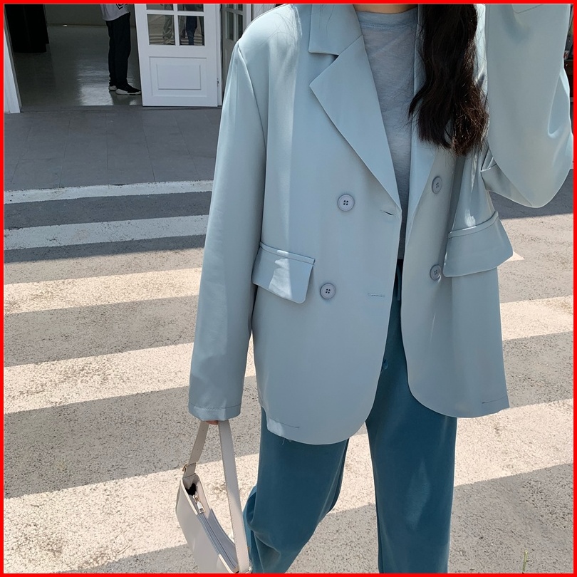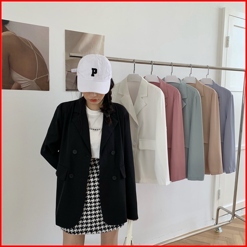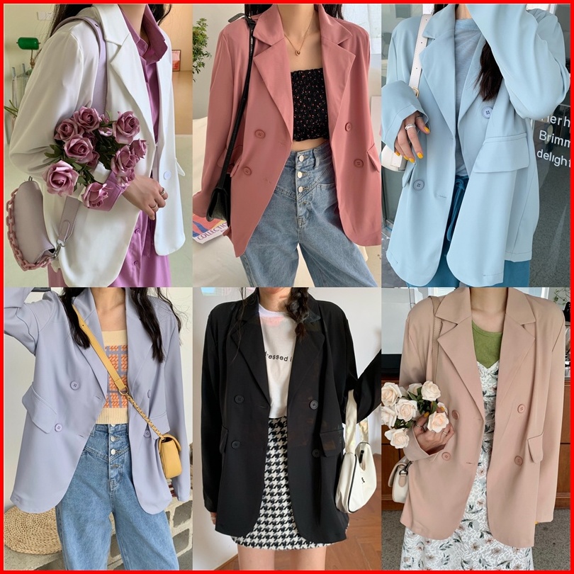Hitam Pink Biru Korea Blazer Wanita Lengan Panjang Setelan Jas Blazer Women Outer Murah