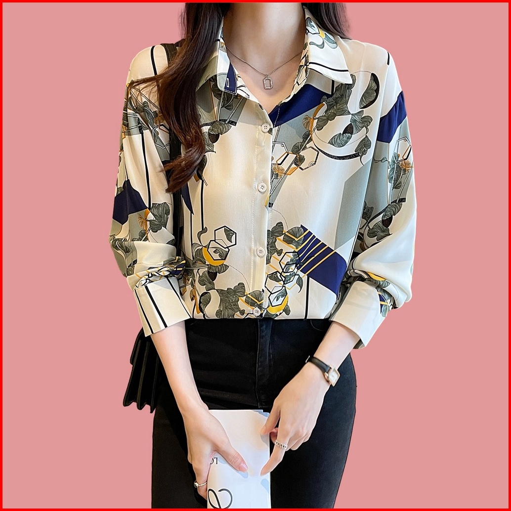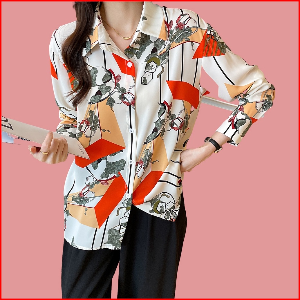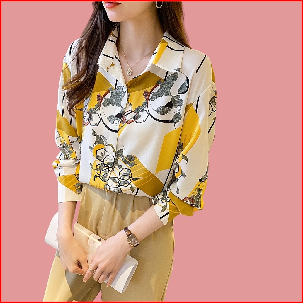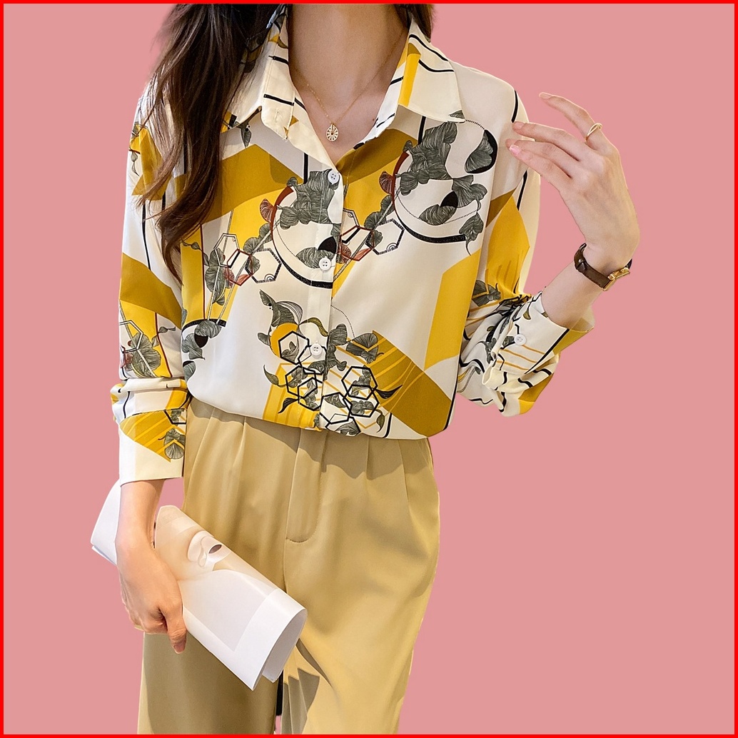 Kain Berkualitas Tinggi Fashion Korea Kuning Merah Biru Kemeja Lengan Panjang Musim Semi Musim Panas Musim Gugur Wanita