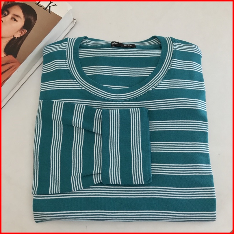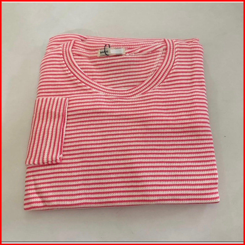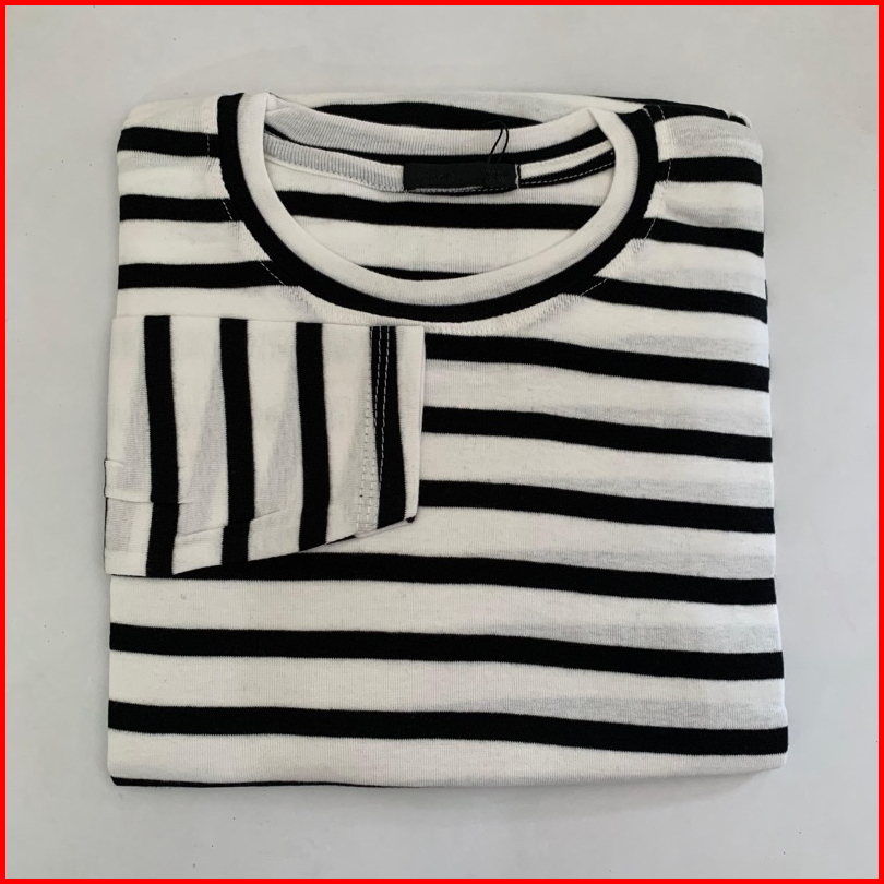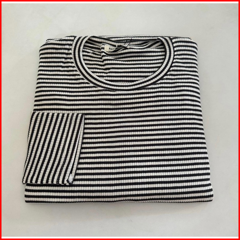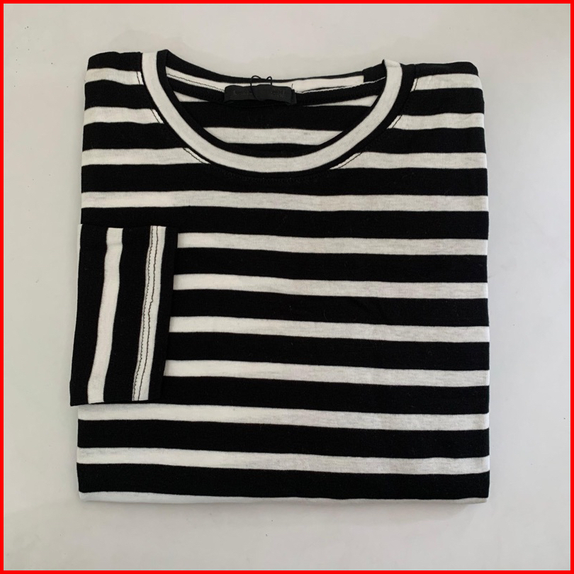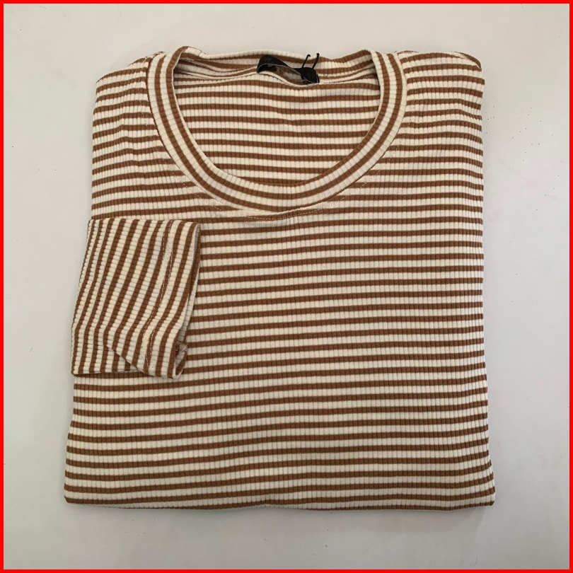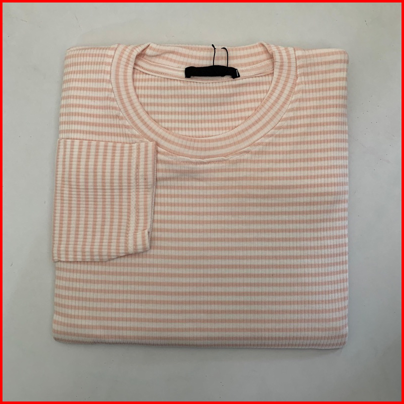 Kaos Rib Stripe Kaos Garis Lengan Panjang Kaos Salur