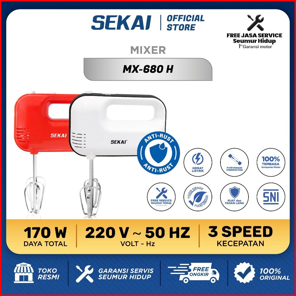 Sekai Hand Mixer Alat Pengaduk Adonan Portable Elektrik Mx 680