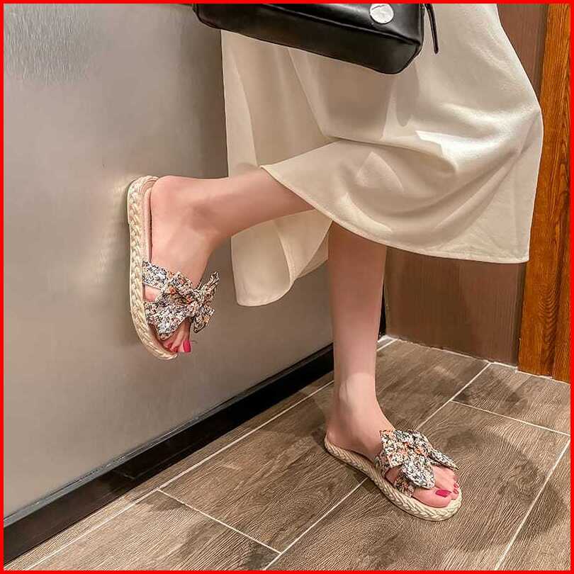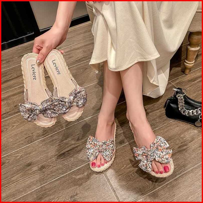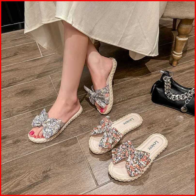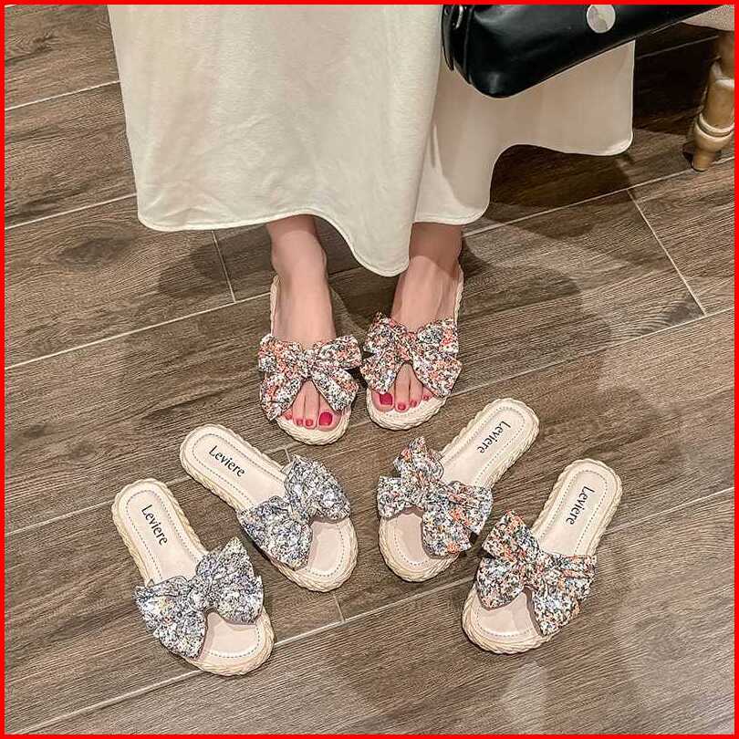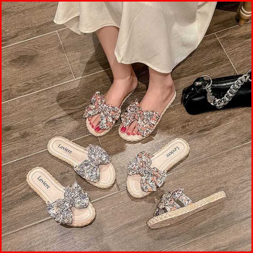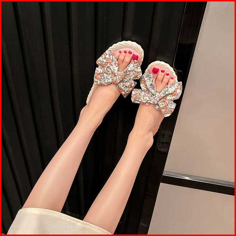 Plk Mashiro Tg1599 Sandal Flat Wanita Motif Bunga Pita Cantik Warna Pastel